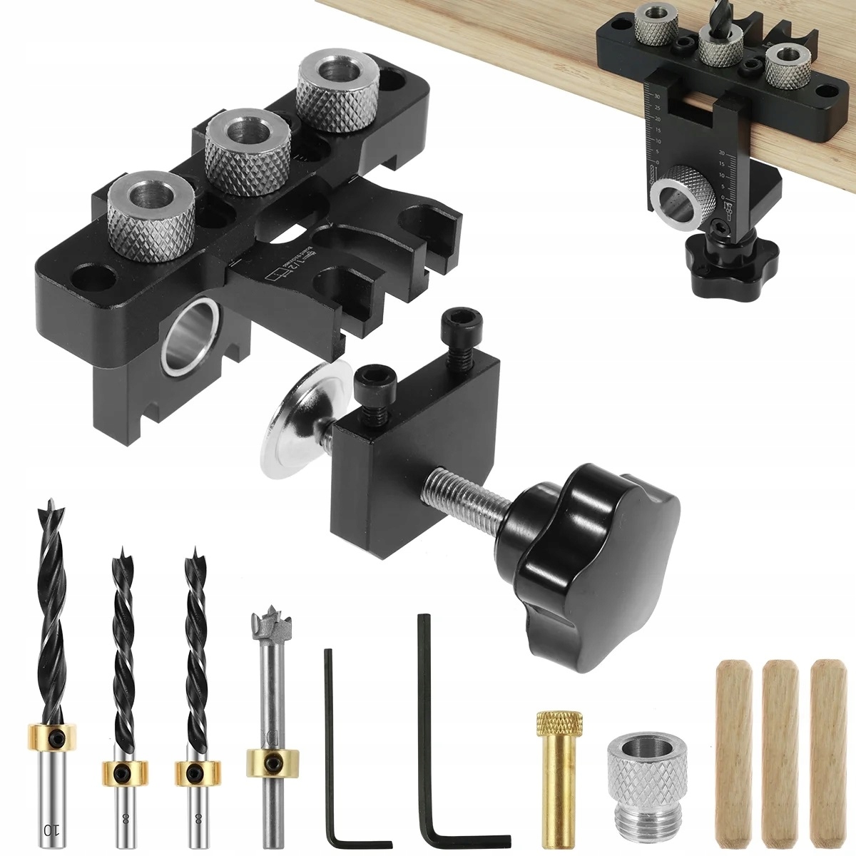 Практический, алюминиевый шаблон для точного бурения отверстий для эксцентричных соединений. Строительство содержит рукава для перпендикулярного бурения, что позволяет точно развернуть отверстия и сверлить их на соответствующую глубину. Набор упражнений и ограничений, включенных в набор , позволяет устанавливать все тренировки на необходимые параметры. Шаблон позволяет создавать 15 -миллиметровые отверстия под эксцентричным и 8 мм и 10 мм для дюбелей, крючков и муфтов. Устройство имеет возможность регулировать (шить) отверстия для дюбелей в зависимости от толщины пластины. Максальная толщина пластины: 26 ммзаблон предназначена для 34 -миллиметровых разъемов мимония.