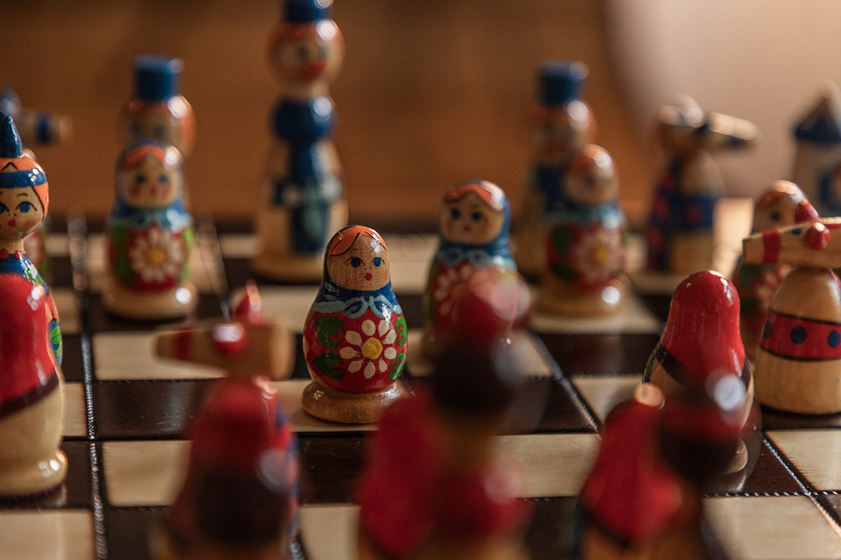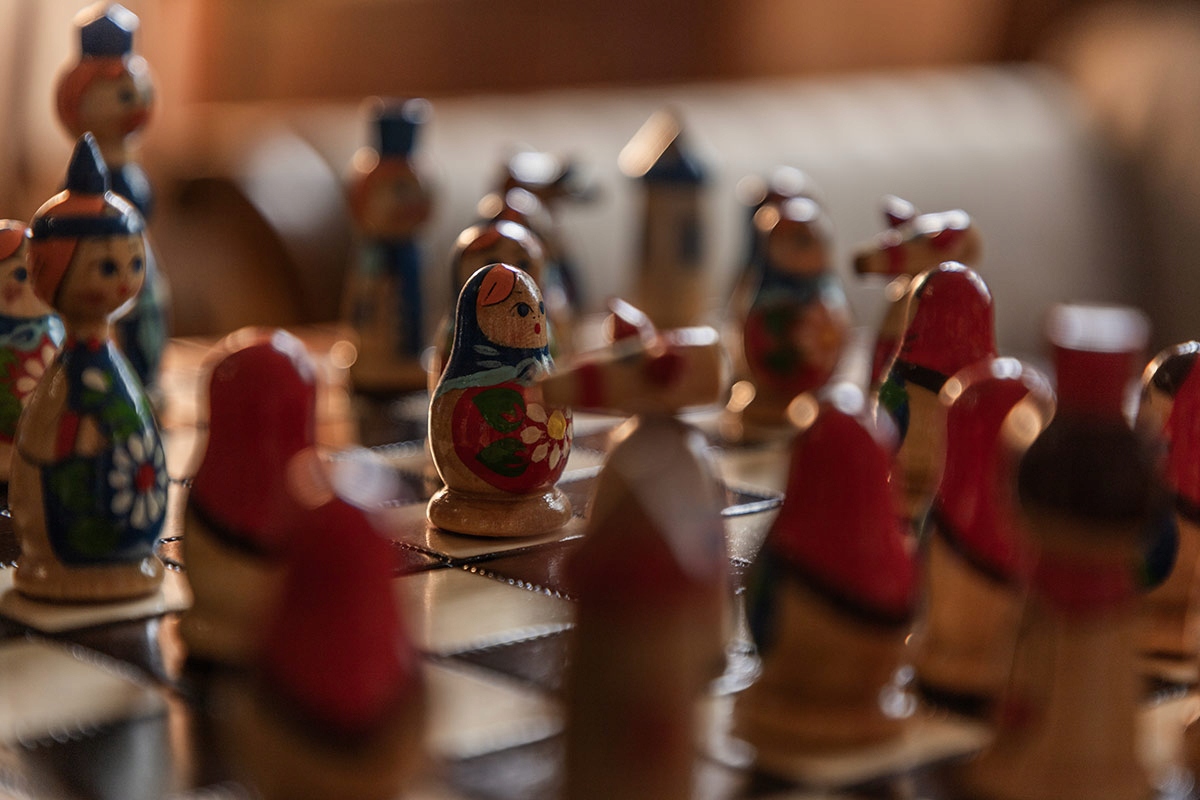 Szachy Babuszka brąz/ Matrioszka/ ręcznie malowane/artystyczne