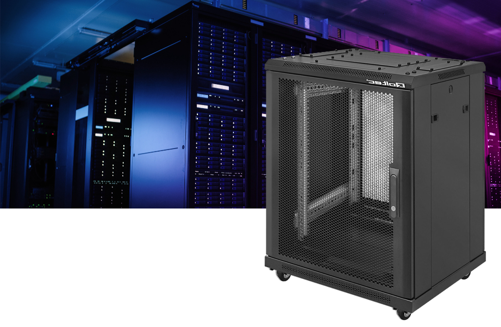 Szafa RACK 19"15U 600x600x855 Perforowane drzwi Stojąca Nóżki+Kółka Zamek