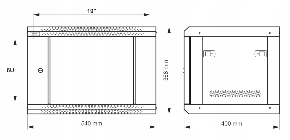 Szafa rack Pulsar 19" 6U/540x400mm drzwi szklane, wisząca, szara (RWA654-G)