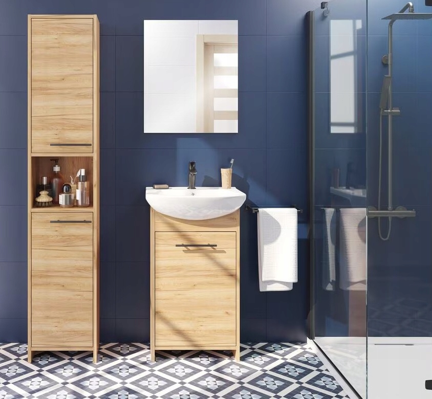 SZAFKA ŁAZIENKOWA Z UMYWALKĄ 45 CM BATERIA + SYFON