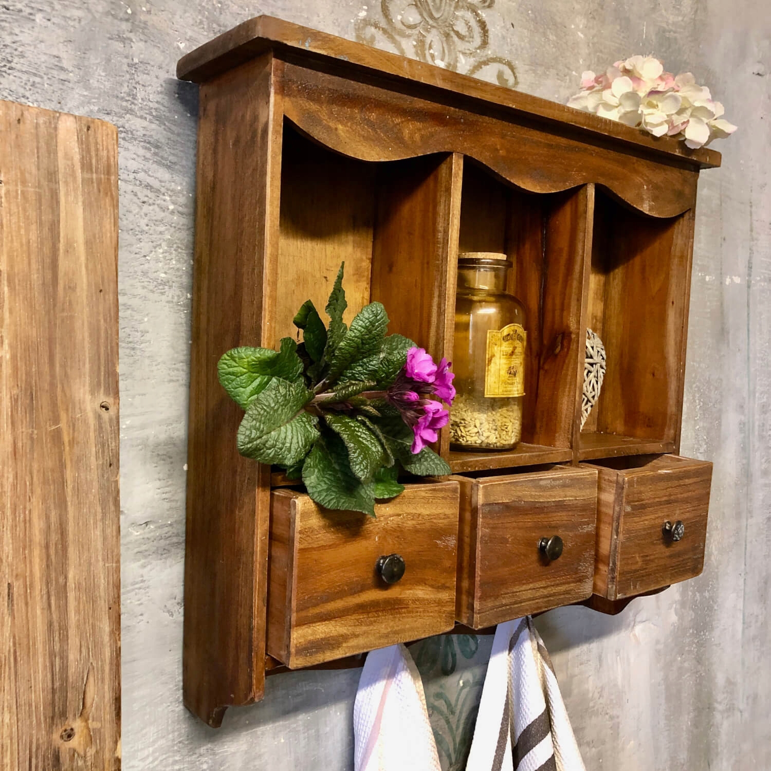 Настенный шкаф с ящиками в стиле ретро, ручная роспись серого цвета
