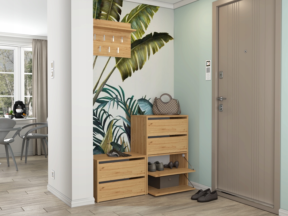 Шкаф для обуви модульный: его можно свободно расширять и создавать практичный комплект, добавляя дополнительные элементы с любой стороны.