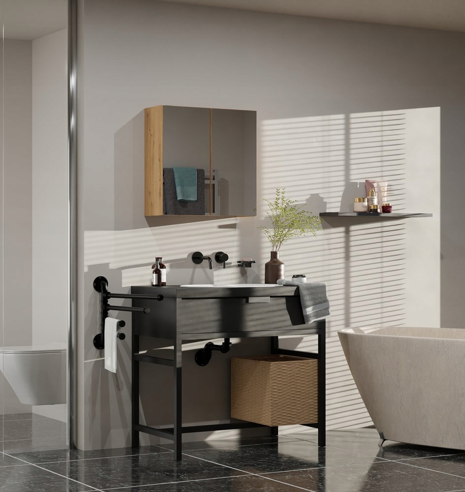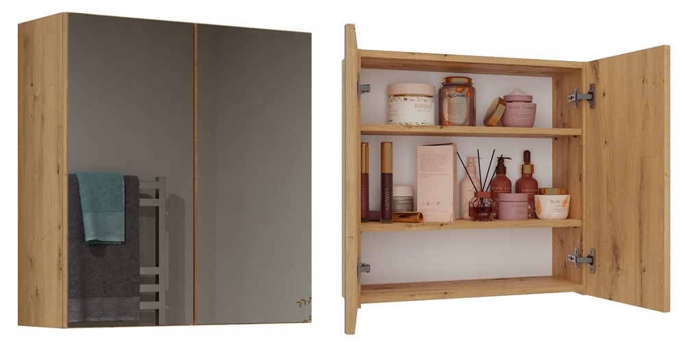 SZAFKA NAD UMYWALKĘ Z LUSTREM ARTISAN WISZĄCA DO ŁAZIENKI POLA 2 DRZWI