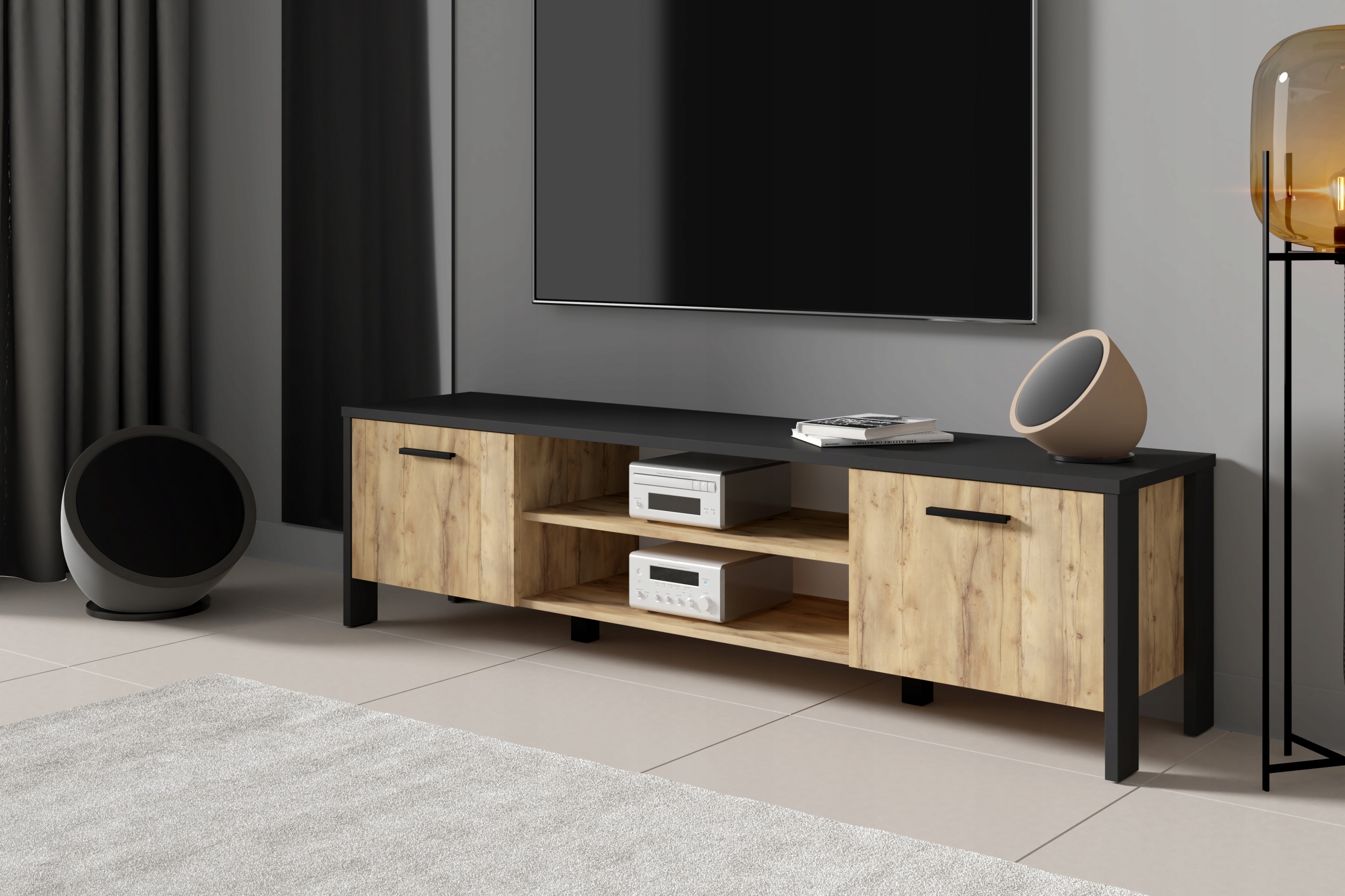 SZAFKA RTV WYOMING CZARNY/WOTAN NOWOCZESNA