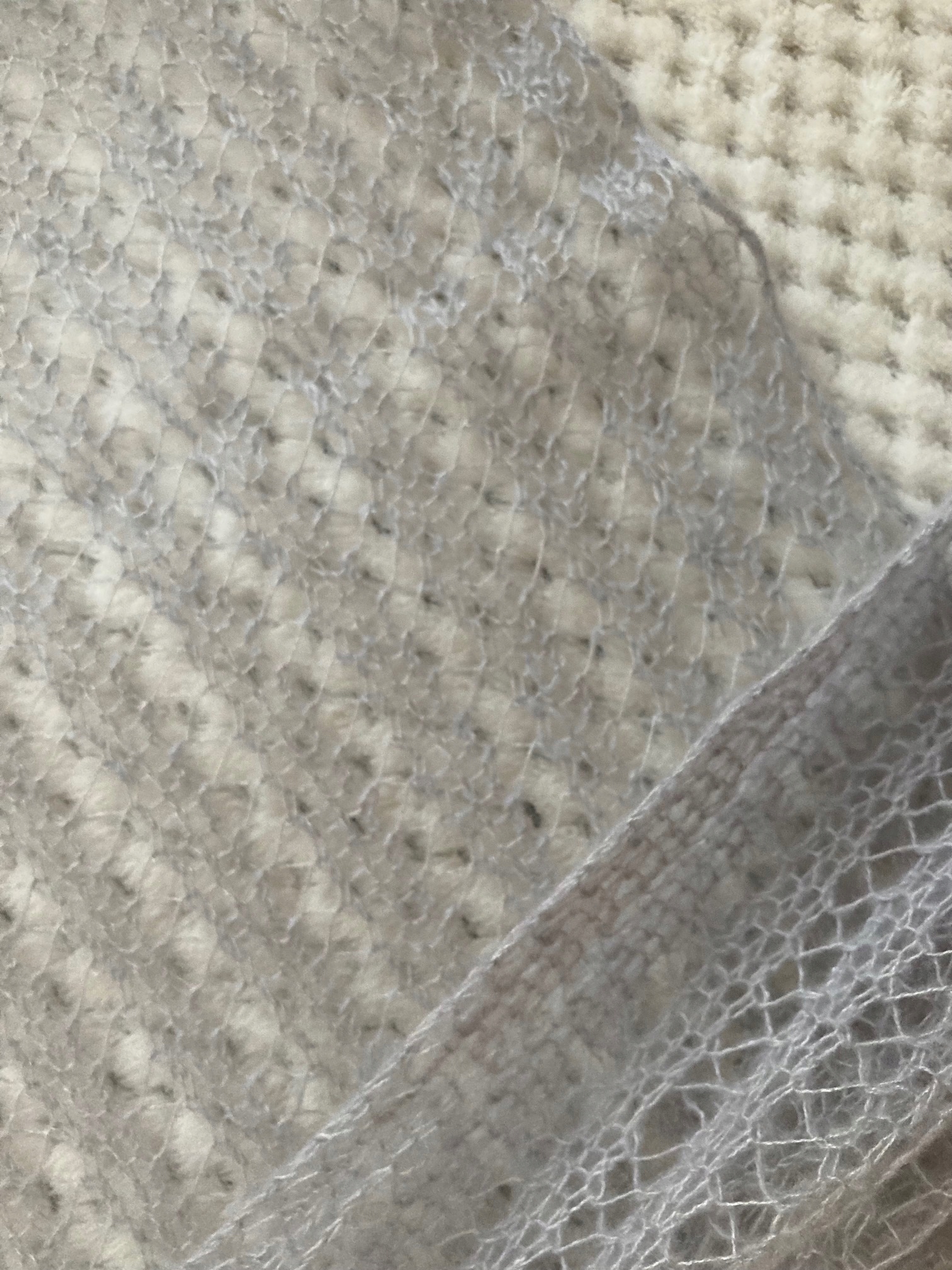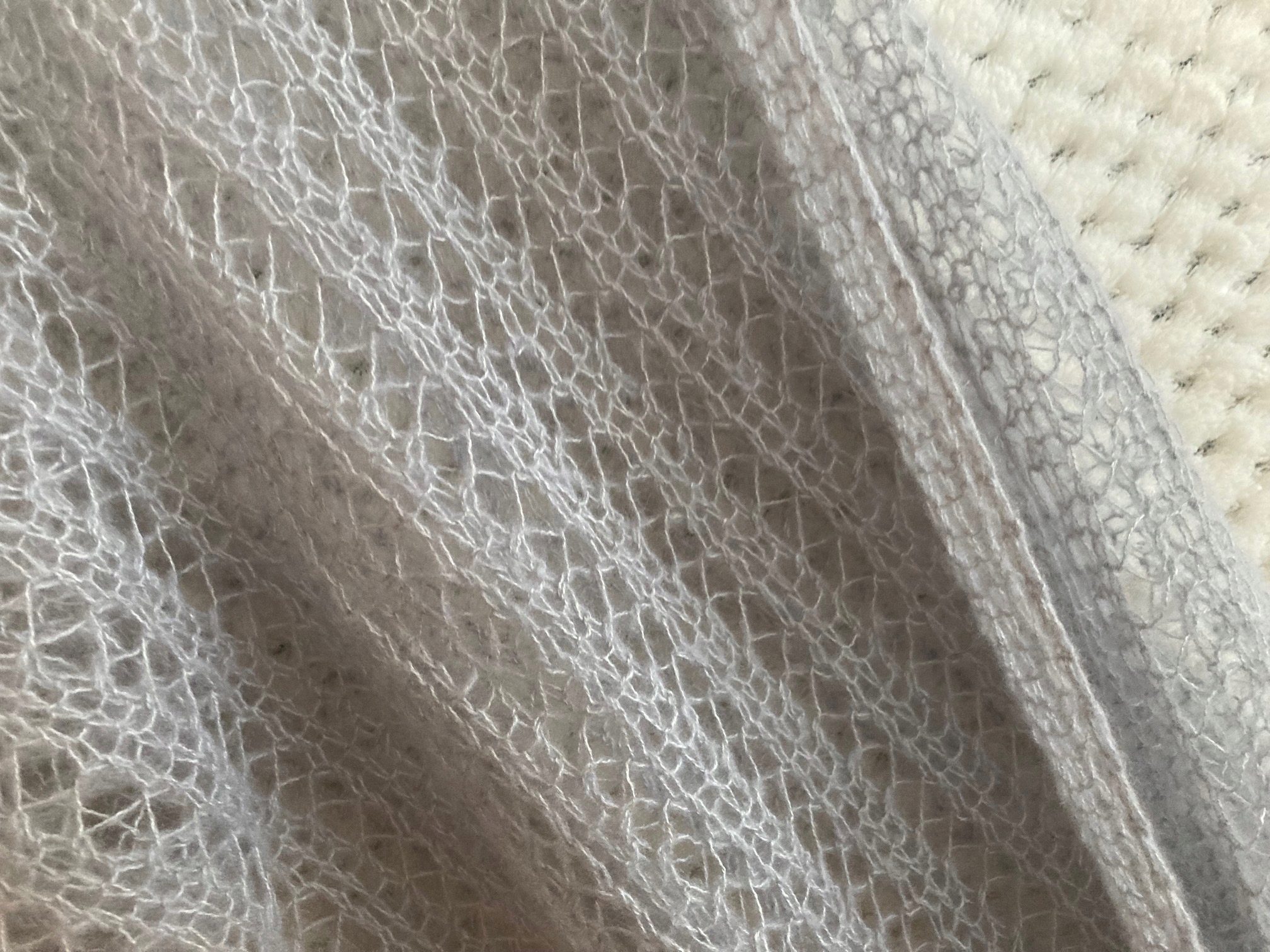 Шаль имеет перекрученные стежки в нескольких местах, отсюда и сниженная цена. Это не так. влияние материи на использование, тренированному глазу заметно в разложенном шарфе, в ношенном практически незаметно.