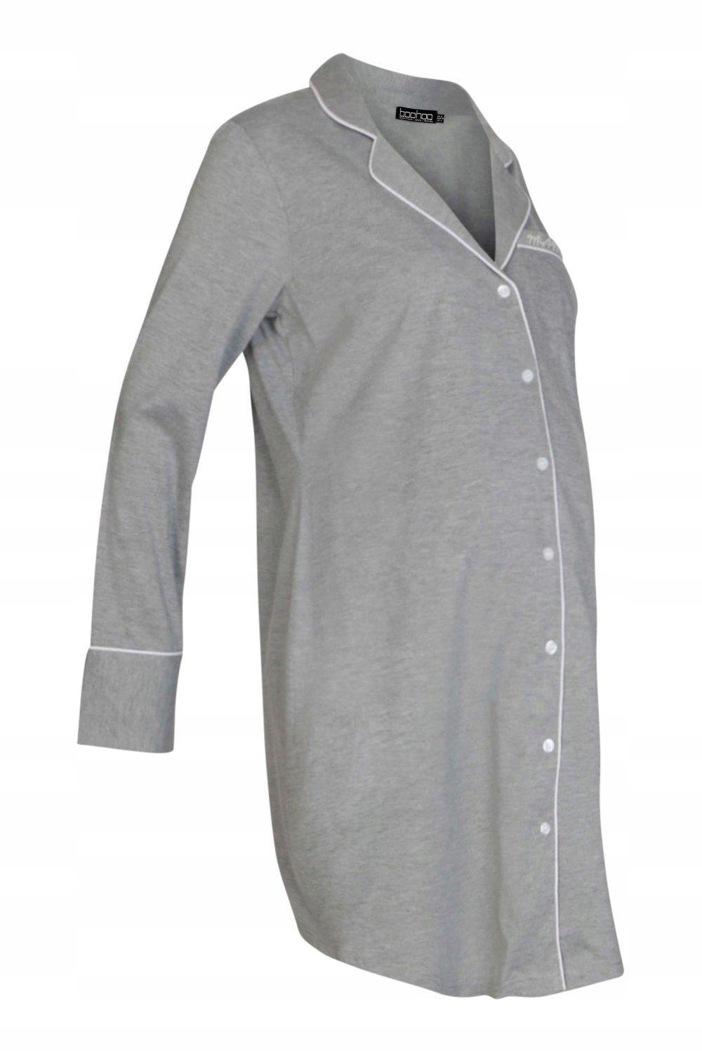 SZARA KOSZULA NOCNA HAFT MAMA CIĄŻA MATERNITY DŁUGI RĘKAW GUZIKI BOOHOO 36