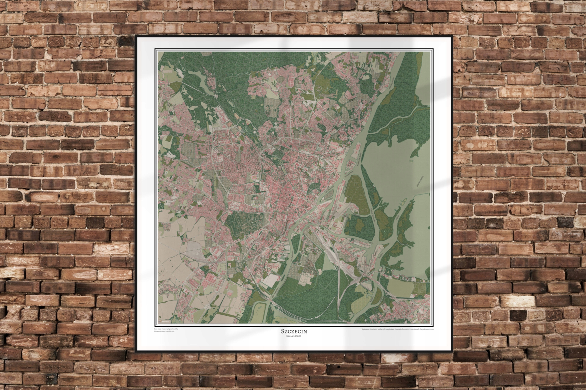 Это не перепечатка или воспроизведение старой карты - это современный вид Щецина ( по состоянию на сентябрь 2023 г.) в стиле картографов восемнадцатого века. Дизайн разработан DodoPrint.