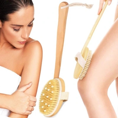 SZCZOTKA Z DŁUGĄ RĄCZKĄ NATURALNA DREWNIANA DO MYCIA MASAŻU CIAŁA PLECÓW