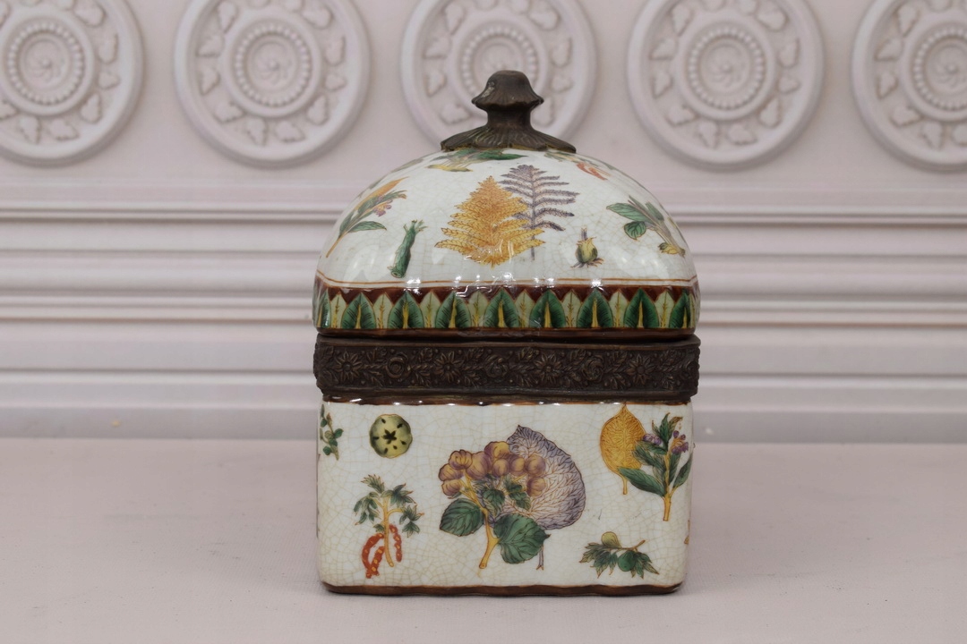 Szkatuła Bomboniera - Porcelana + Brąz - Wieś