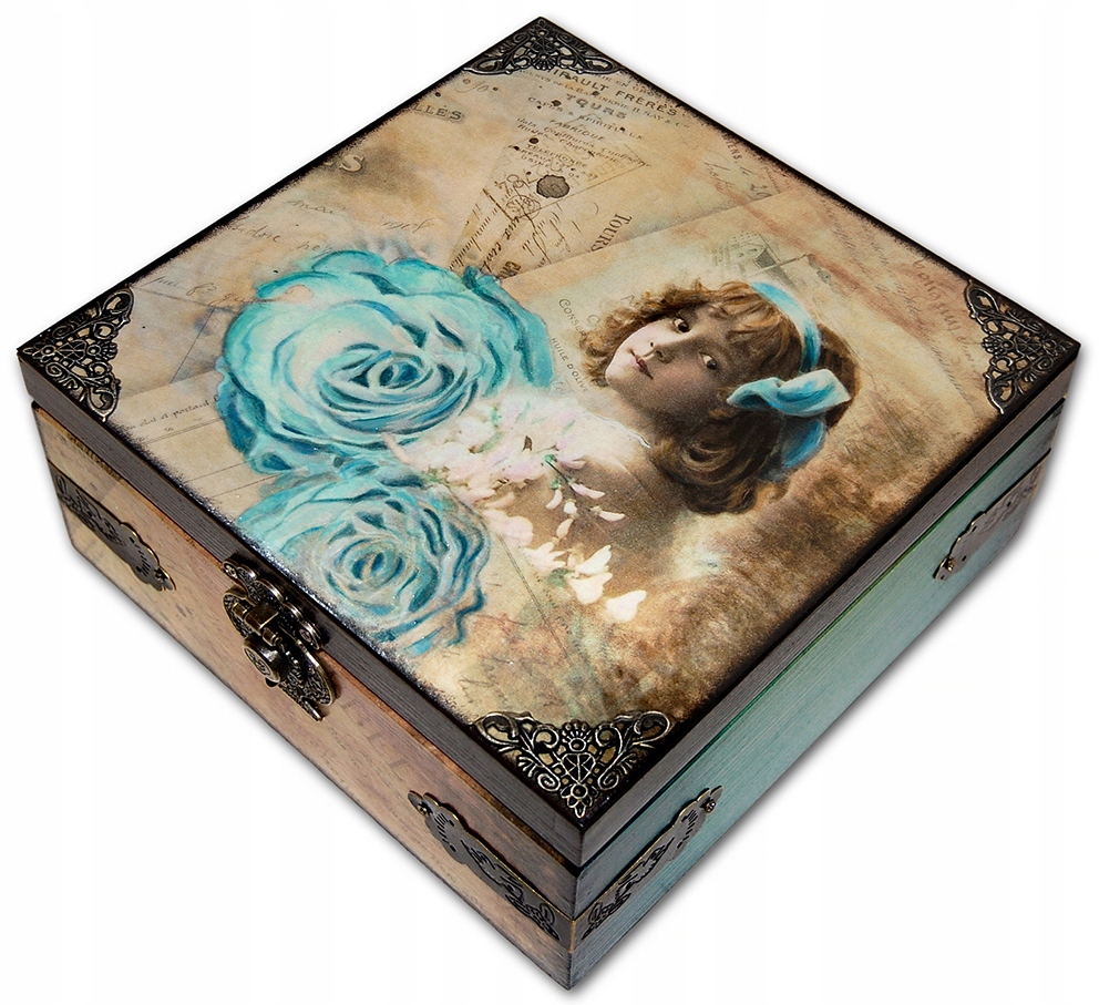 SZKATUŁKA drewniane pudełko GIRL BLUE ROSE 20x20