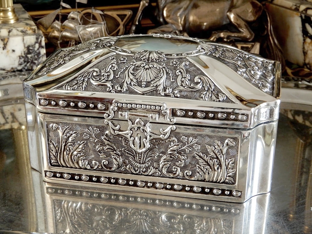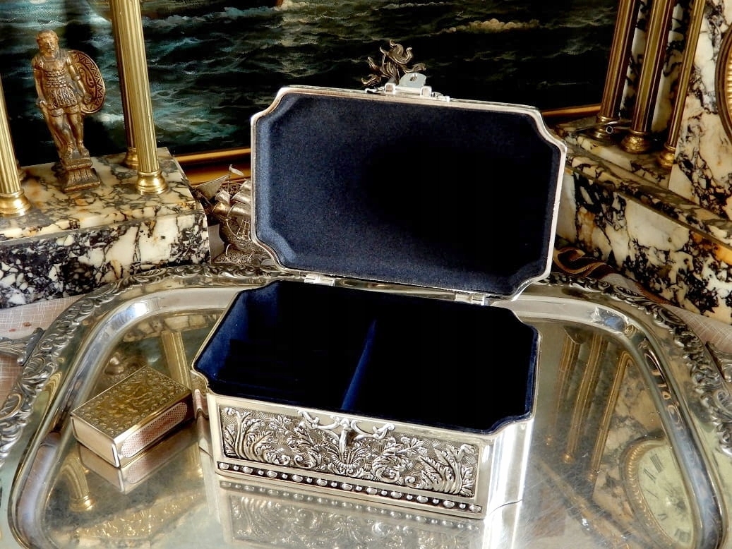 SZKATUŁKA POSREBRZANA SKRZYNIA NA BIŻUTERIĘ PREZENT NA CHRZEST URODZINY