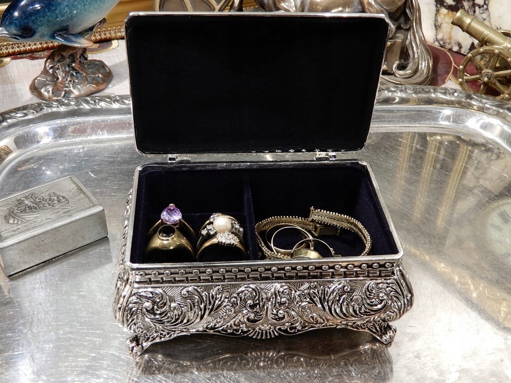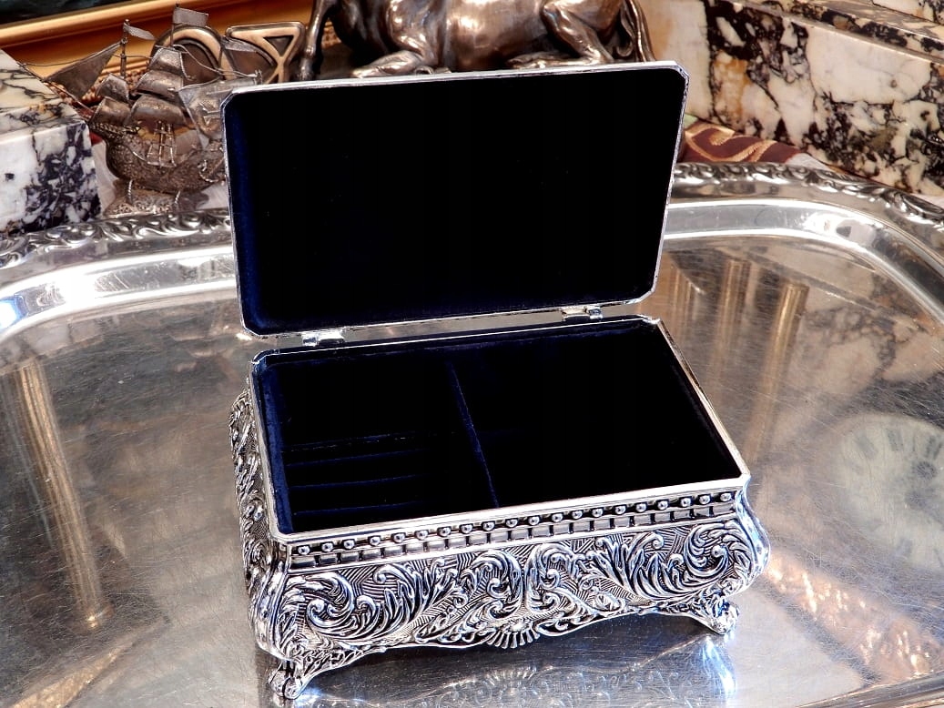 SZKATUŁKA POSREBRZANA SREBRNA SKRZYNIA BAROKOWY STYL NA KOMUNIĘ URODZINY