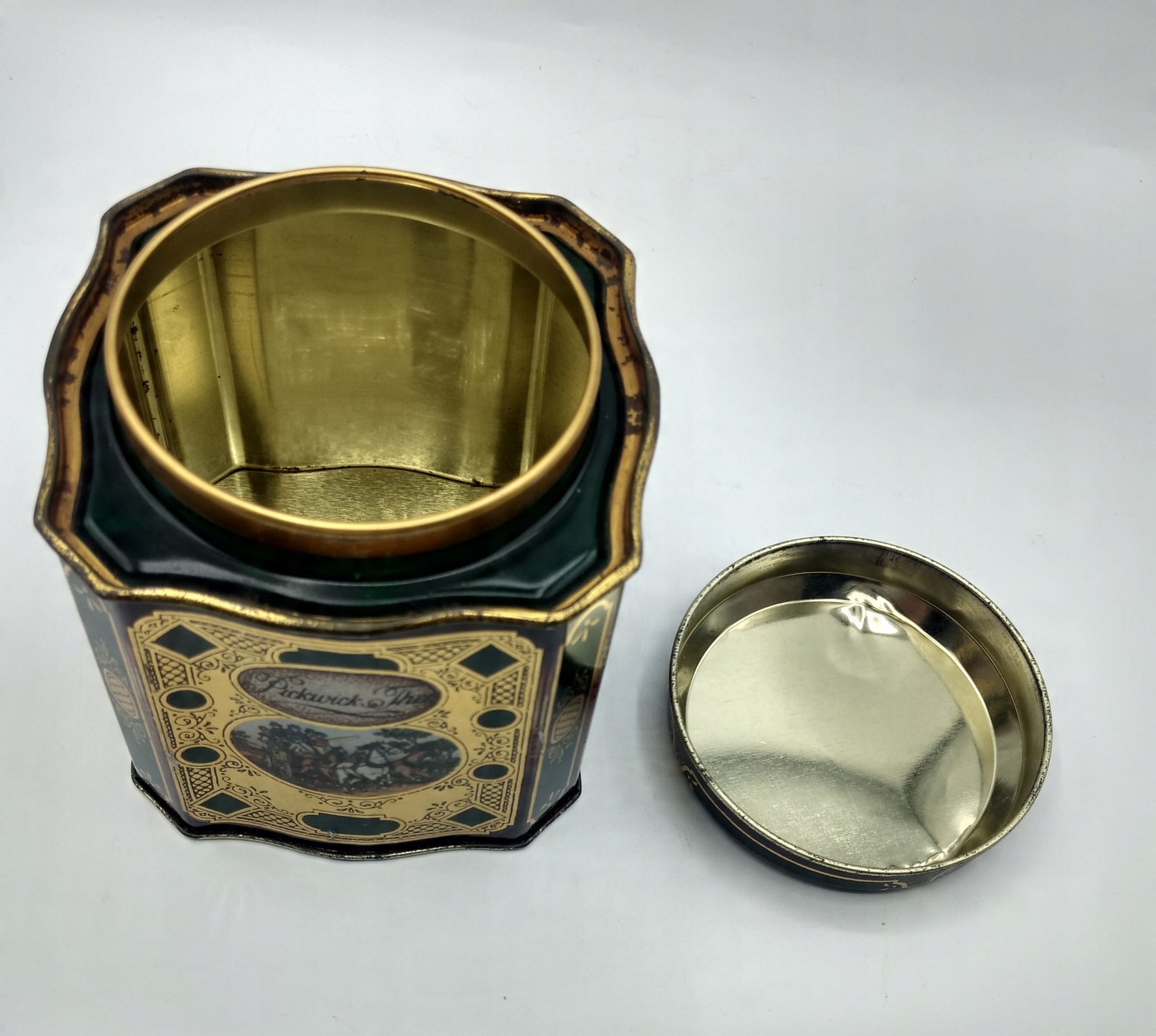 - это вещь старая и ее видно, небольшие вмятины и царапины кое-где, следы коррозии, но это только добавляет шарма жести, все это дополняется классными цветами и красивым мотивом телеги с лошадьми,