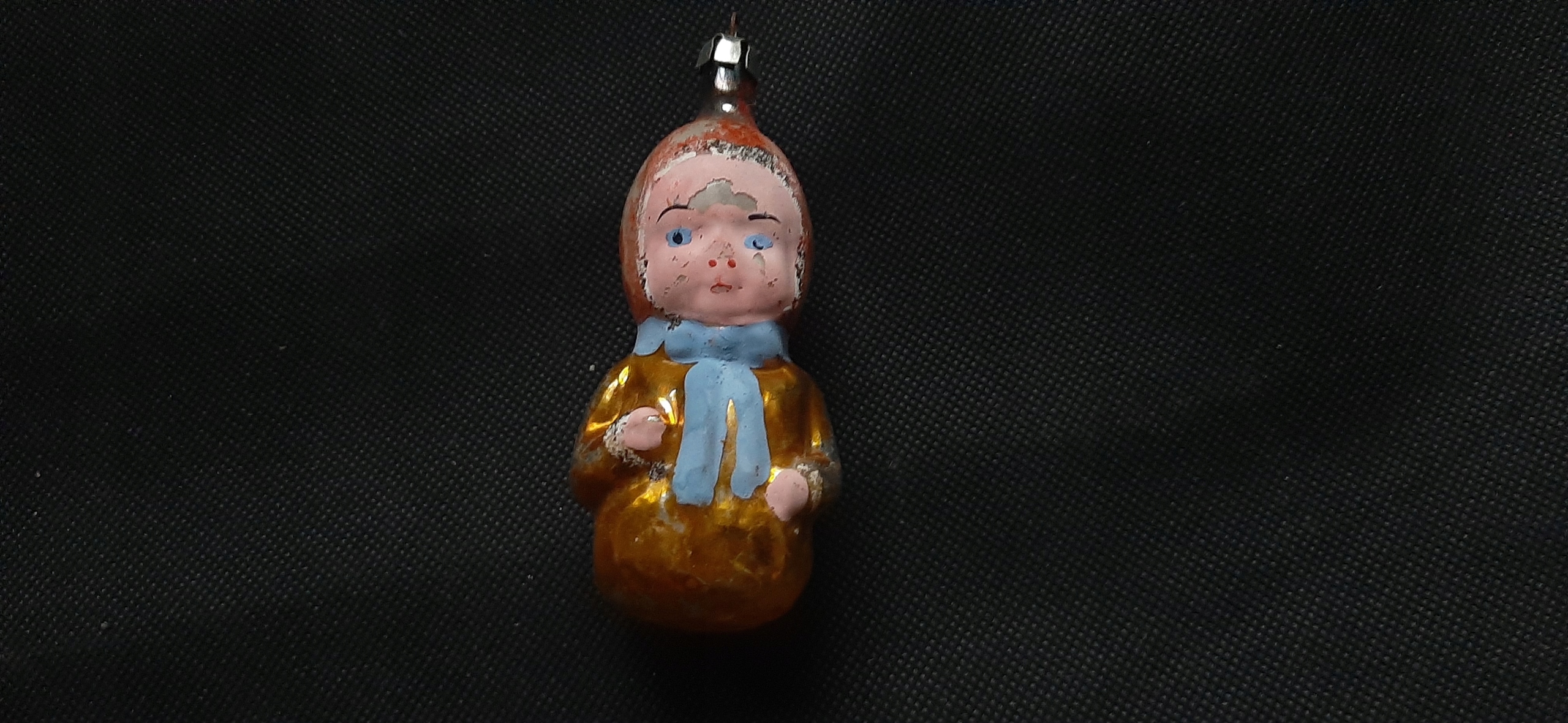 Szklana bombka z PRL - laleczka , babuszka , buzia
