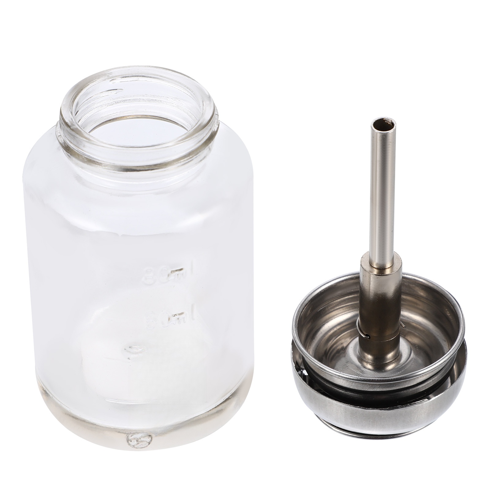 СТЕКЛЯННАЯ БУТЫЛКА ДЛЯ АЛКОГЛЯ С НАСОСОМ, ПРОЗРАЧНАЯ 100МЛ
