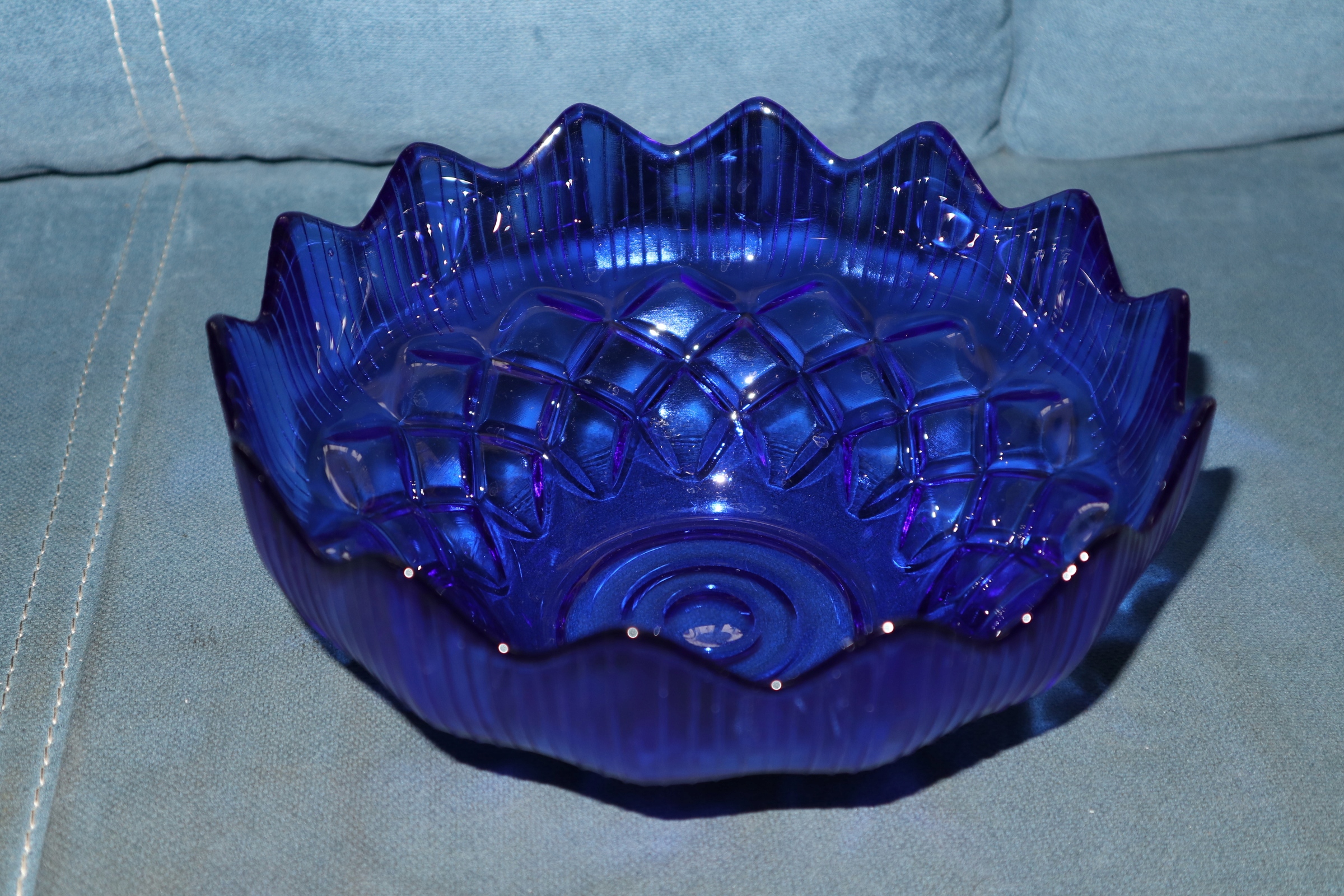 ЧАШКА СТЕКЛЯННАЯ В СТИЛЕ 1970-Х ГОД, СИНЯЯ, БЕЗ ЧИПСА И ЧИПСА!!! высота 9,5 см, диаметр 21,5 см