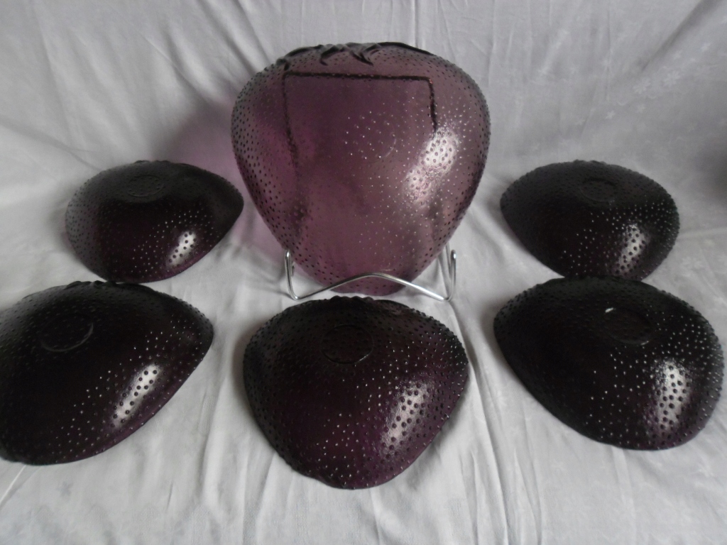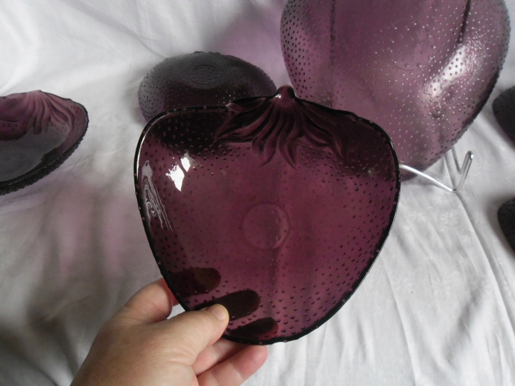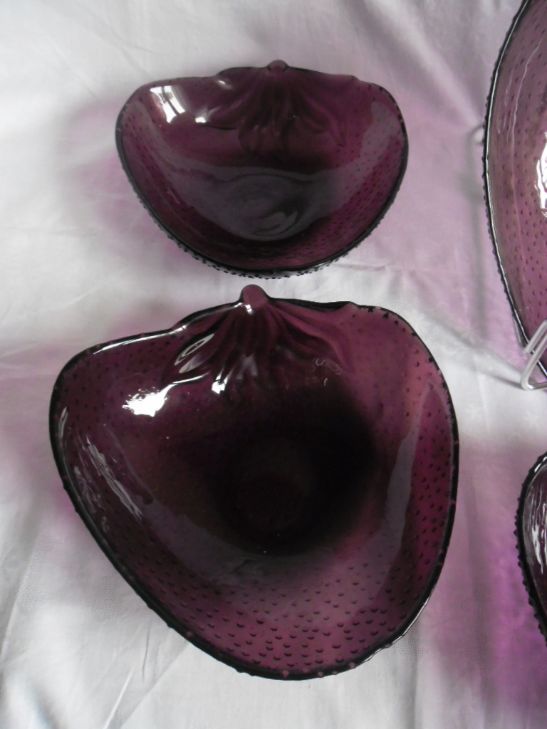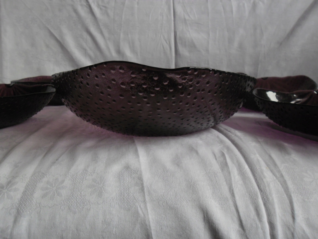 НАБОР СТЕКЛА В ФОРМЕ КЛУБНИКИ ДЛЯ ФРУКТОВЫХ САЛАТОВ И Т. Д. БОЛЬШАЯ ТАРЕЛКА И ПЯТЬ САЛАТНЫХ ЯЩИКОВ ПОМАЛЕНЬКИХ. СОСТОЯНИЕ ХОРОШЕЕ, ЦАРАПИНЫ НОРМАЛЬНОГО ИСПОЛЬЗОВАНИЯ, ВИДИМЫ ДЕТАЛИ СЕРЕДИНИЦЫ 20 ВЕКА. НА Z ФОТО.