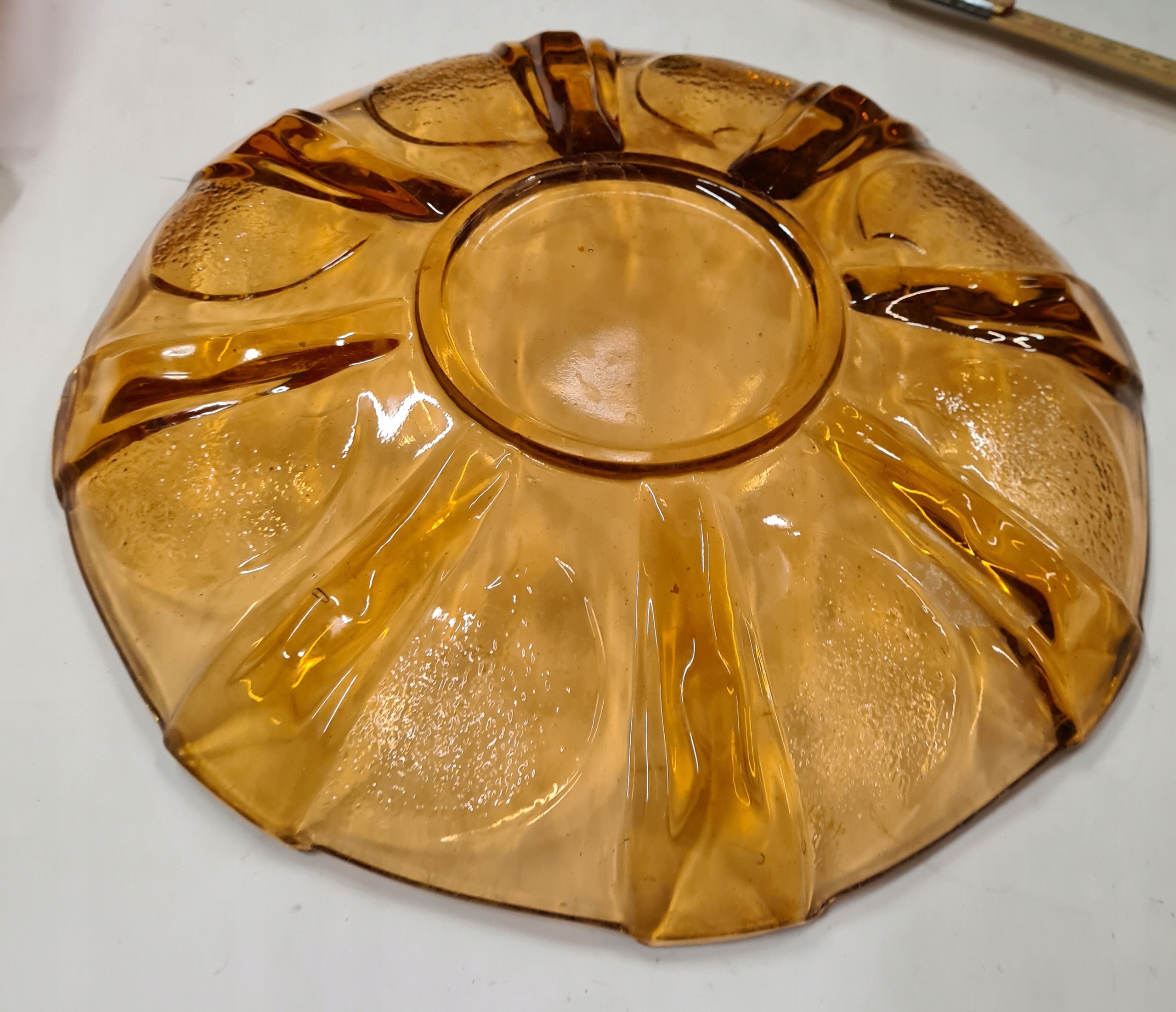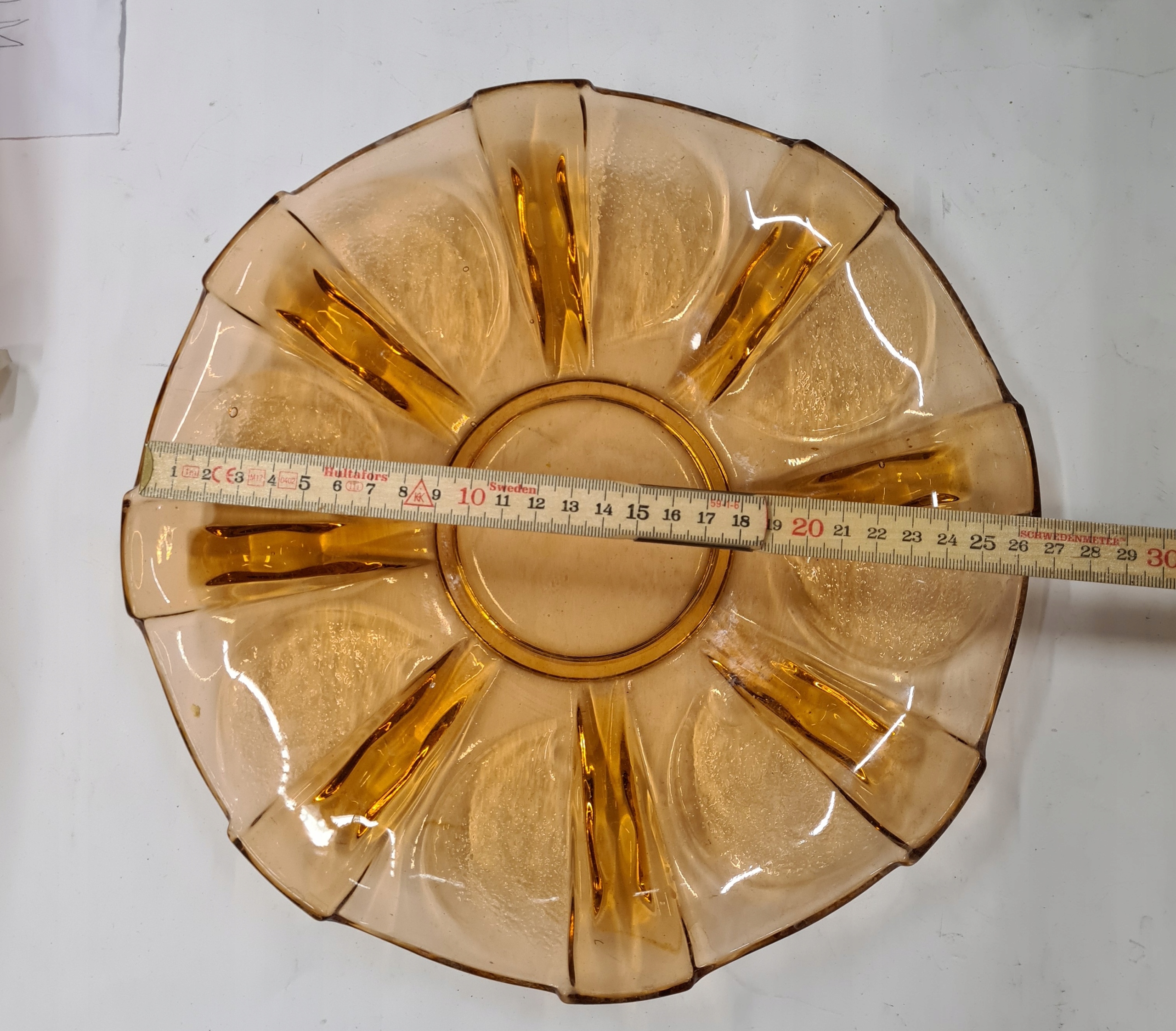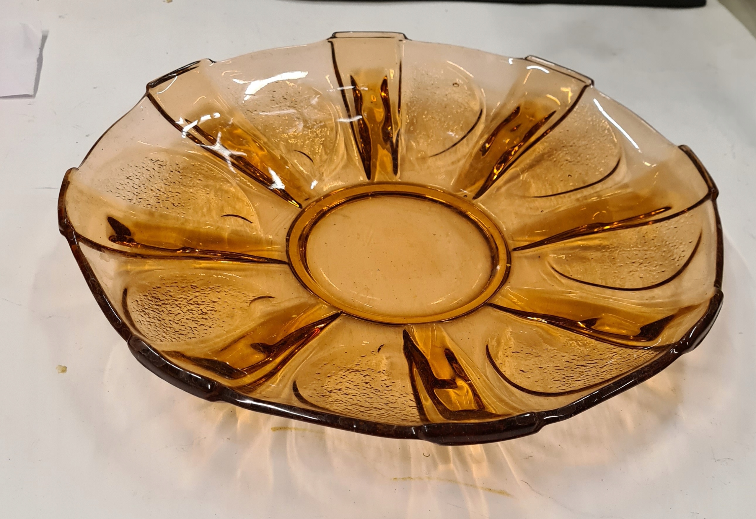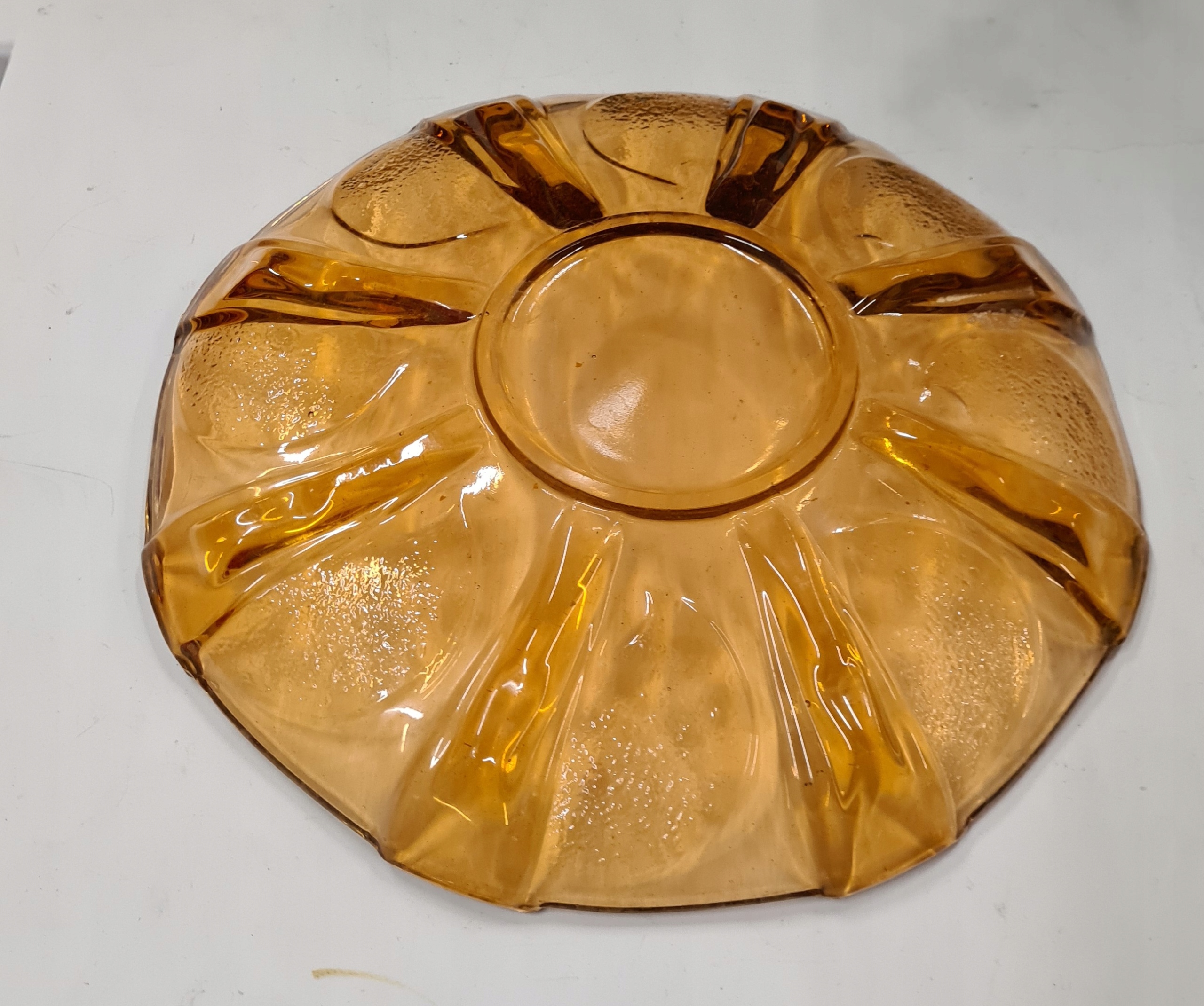 стеклянная тарелка, блюдо, Польская Народная Республика, Зомбковице, цвет янтаря