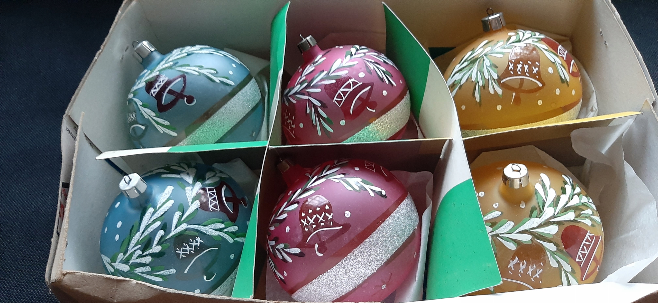 Szklane bombki z PRL - Komplet 6 szt duże kule