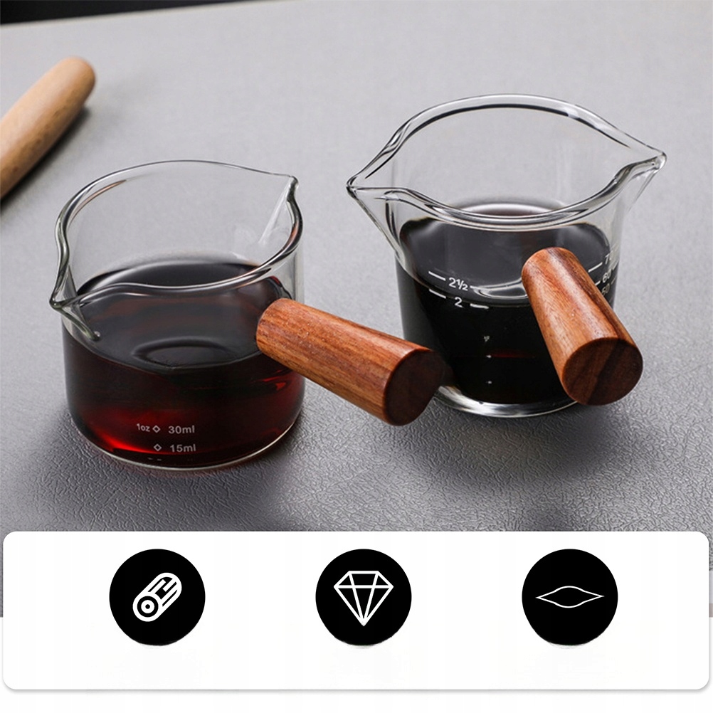 SZKLANEK ESPRESSO Z PODWÓJNYM WYLEWEM I DREWNIANĄ RĄCZKĄ 75ML