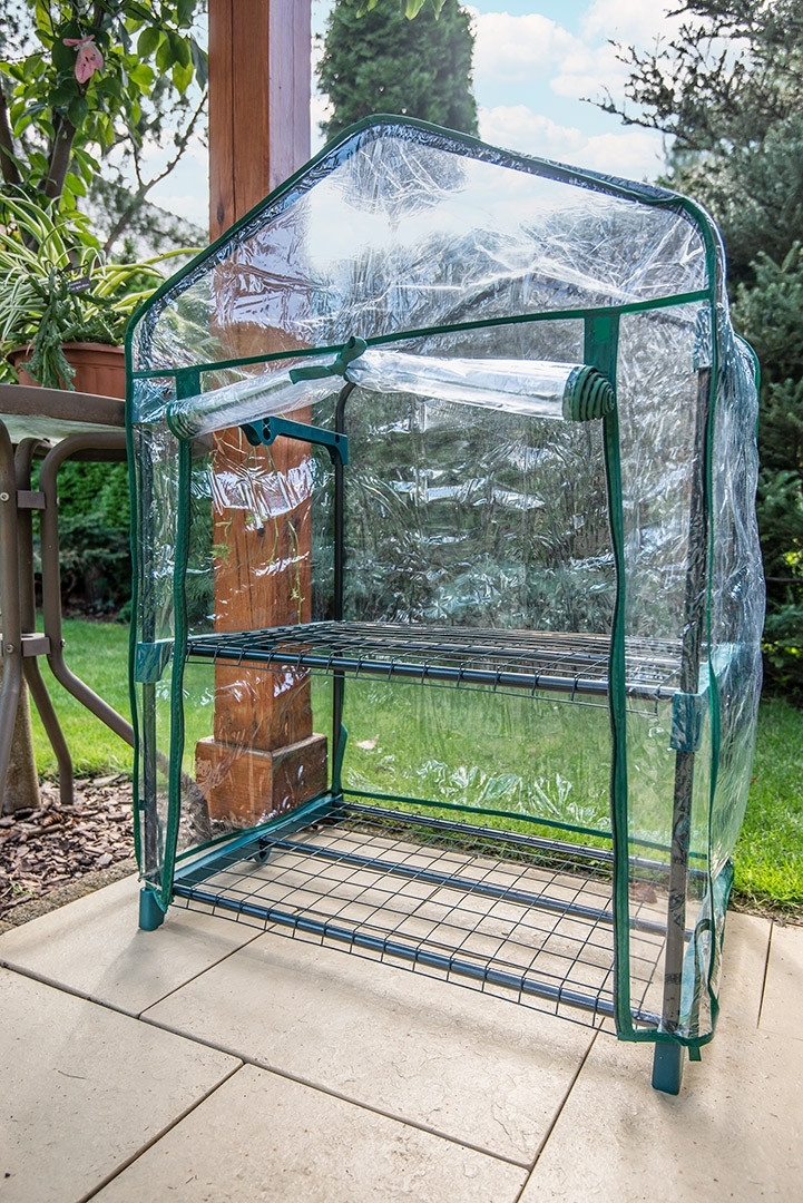 Теплица 69 х 49 х 95 см, пленка ПВХ, металлоконструкция 15 -900 от NEO — складная теплица для использования дома и на улице. Он имеет стабильную металлическую конструкцию с порошковым покрытием и пленку ПВХ. Его размеры 69 х 49 х 95 см. Его легко установить. Он закрывается на практичную молнию, а переднюю часть теплицы можно свернуть для облегчения обращения с растениями. Размер переднего проема 49 х 71 см. Теплица оборудована двумя полками. Это будет современная и интересная альтернатива для всех, кто мечтает о домашних травах, фруктах или овощах.