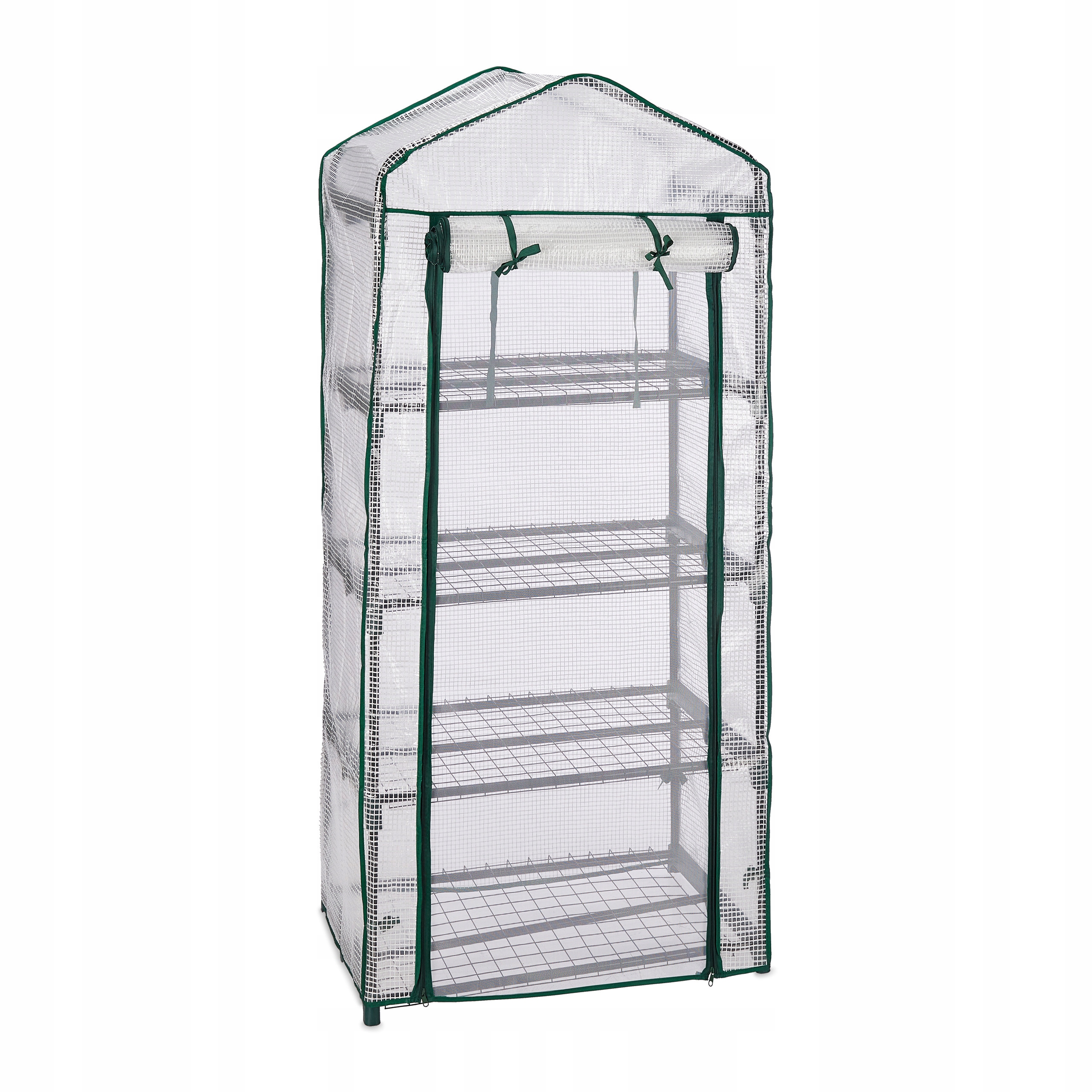 В этой теплице вы сможете выращивать овощи и зелень у себя в саду. Теплица из фольги защищает растения от погодных условий и вредителей, поддерживает их в оптимальных климатических условиях. Температуру можно легко регулировать через подъемную дверь. Теплица идеальна для защищенных от ветра уголков на террасе или в саду. Благодаря практичной вставной системе теплица собирается быстро и легко. Размеры садовой теплицы: ок. 159 х 70 х 49 см (высота х ширина х длина) — размеры двери: ок. см (высота х ширина.) - размеры полок: около 62 х 43 см (ширина х длина) - расстояние между полками: около 33 см - максимальная нагрузка: 8 кг - вес: около 4,4 кг - материал: железо, пластик - цвет: зеленый, белый Садовая теплица для ваших овощей - идеальные условия для выращивания растений и трав - защита молодых растений от плохих погодных условий - регулирование тепла и влажности через окна - простой и быстрый монтаж благодаря вставной системе - можно установить по потребности - также подходит для небольших балконов - прозрачная пластиковая пленка обеспечивает достаточно света В комплекте - 1 тоннель из фольги для установки - инструкция по сборке - декоративные элементы в комплект не входят