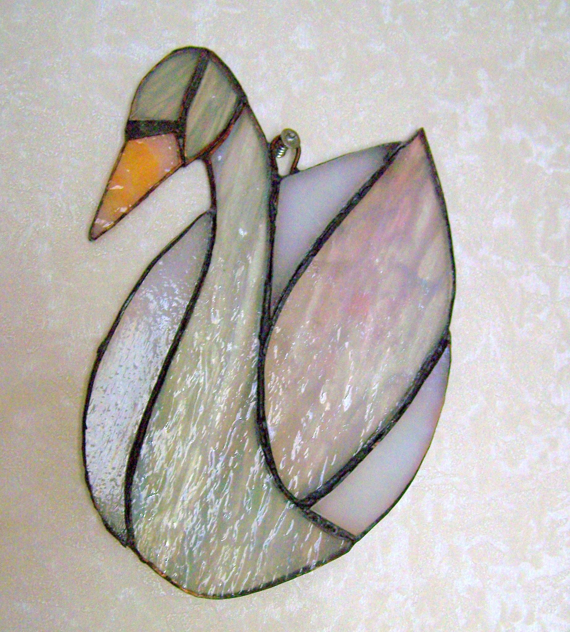 SZKŁO WITRAŻOWE TIFFANY SZARY ŁABĘDŹ 14X12 CM