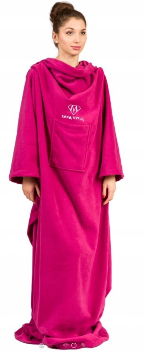 SZLAFROK KOC Z RĘKAWAMI FUKSJA SUPER MAMA