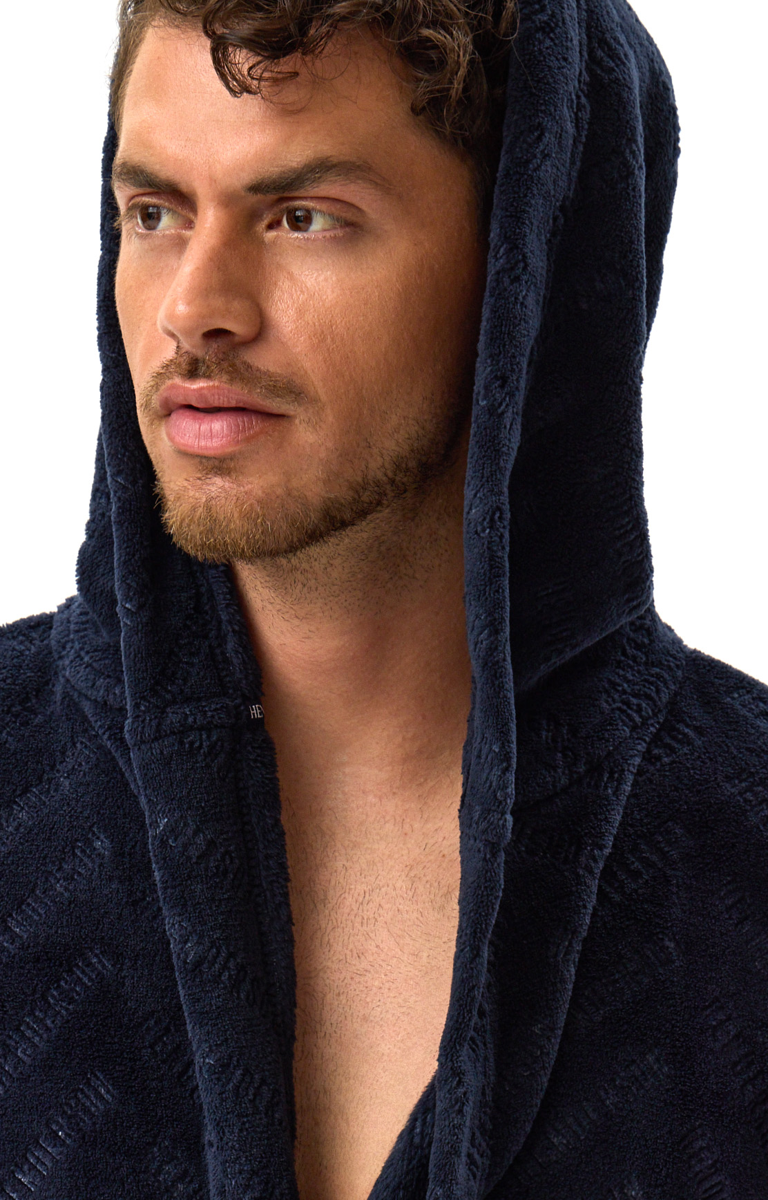 ХАЛАТ МУЖСКОЙ HENDERSON Hacker элегантный, завязывается на талии, с КАПЮШОНОМ