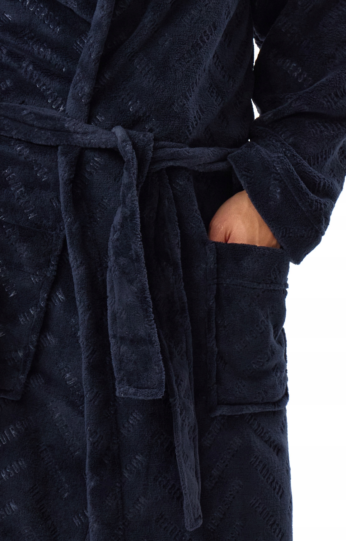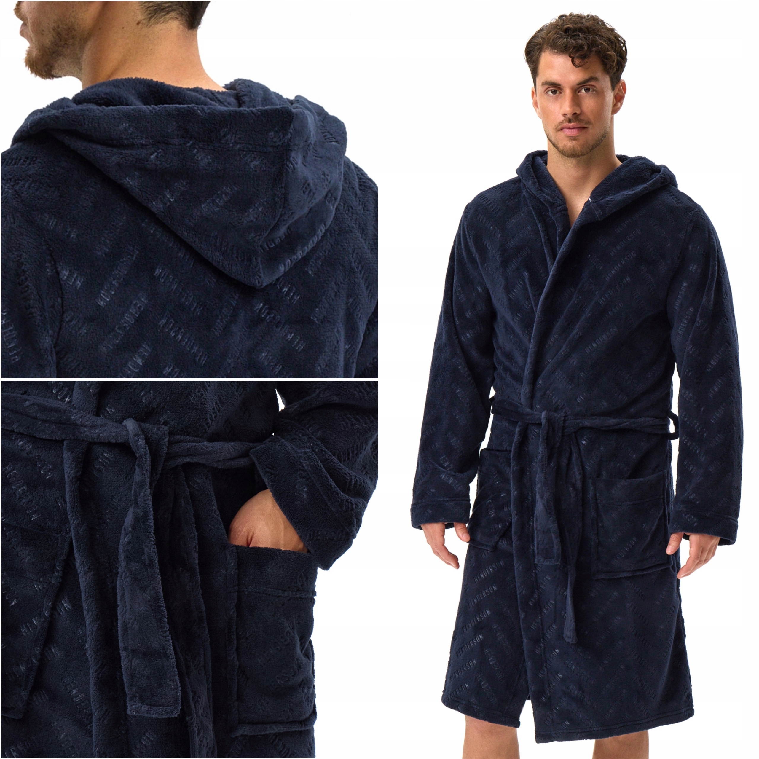 ХАЛАТ МУЖСКОЙ Henderson Hacker, элегантный, завязывается на талии, С КАПЮШОНОМ - L