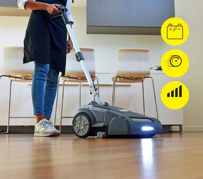 Lavor Fit — поломоечная машина с сушкой, оснащенная особенно мощным всасывающим двигателем, а высокоскоростная цилиндрическая щетка обеспечивает оптимальную очистку.