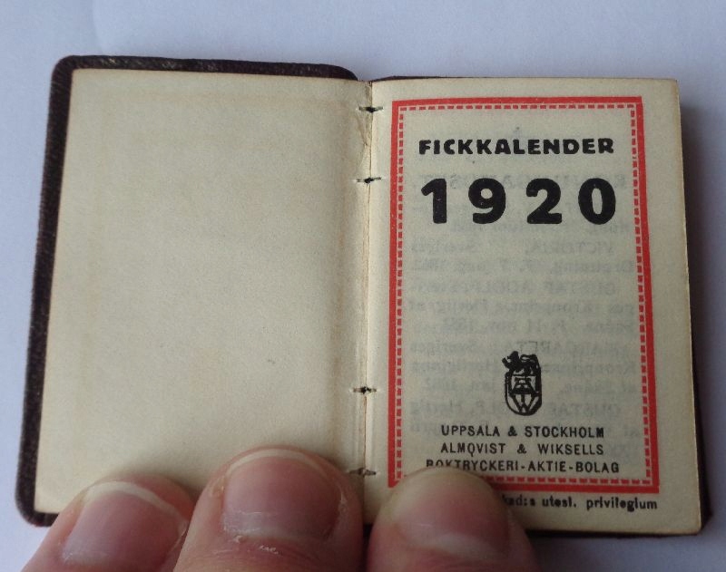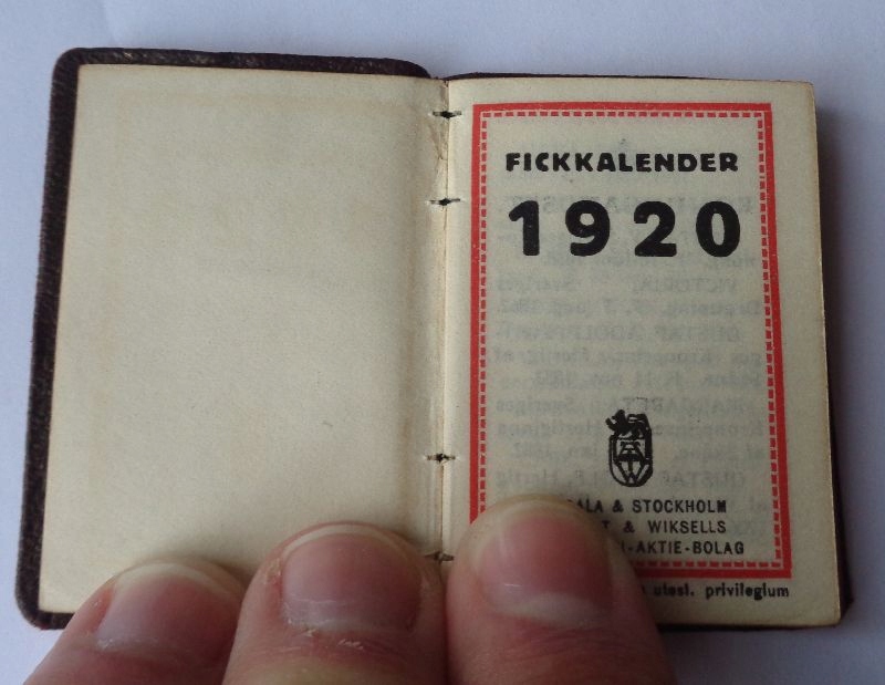 Красивый, элегантный карманный календарь 1920 года. Экспонат издан в Стокгольме. Экспонат имеет твердую коричневую обложку. На обложке золотой краской нарисована дата «1920». Календарь имеет элегантный титульный лист. Помимо месяцев, он содержит и другие тексты. Календарь издан в Стокгольме. Выставка завершена. Всем рекомендую.
