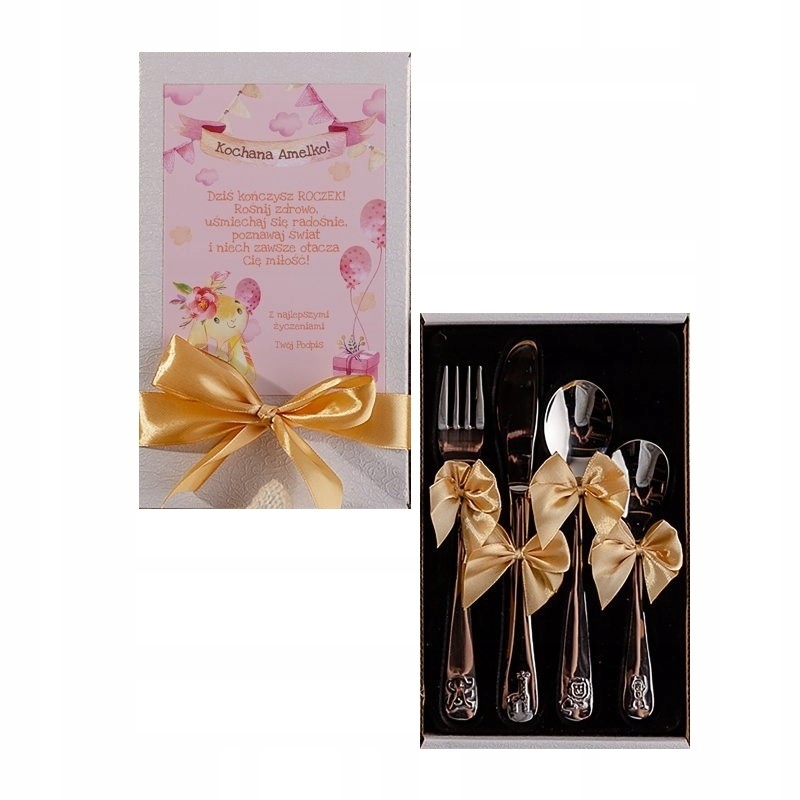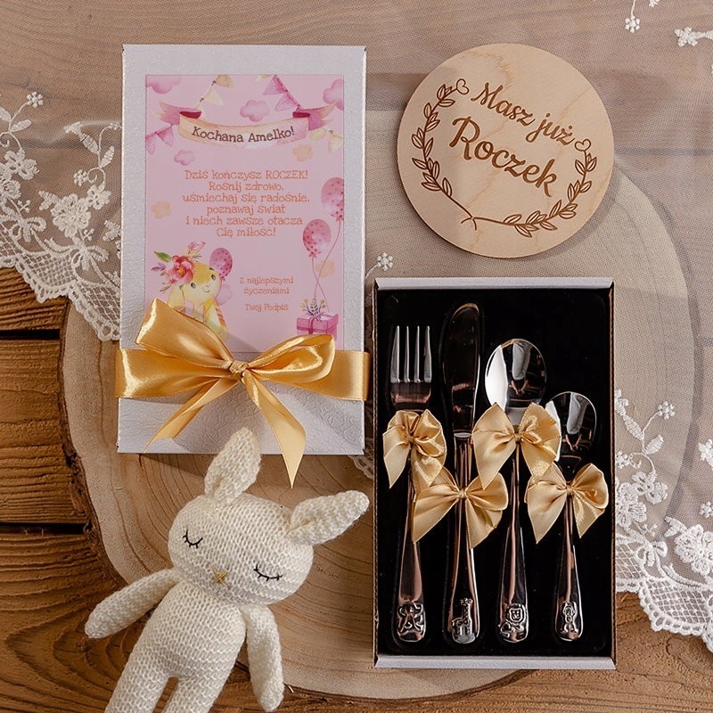 SZTUĆCE dziecięce na Roczek IMIĘ Różowy Króliczek