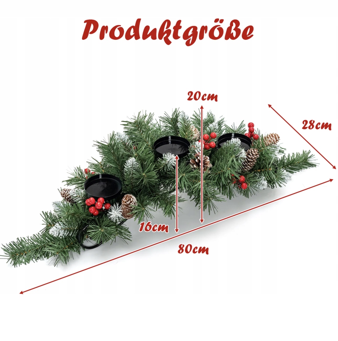 Sztuczny stroik bożonarodzeniowy z 3 świecznikami