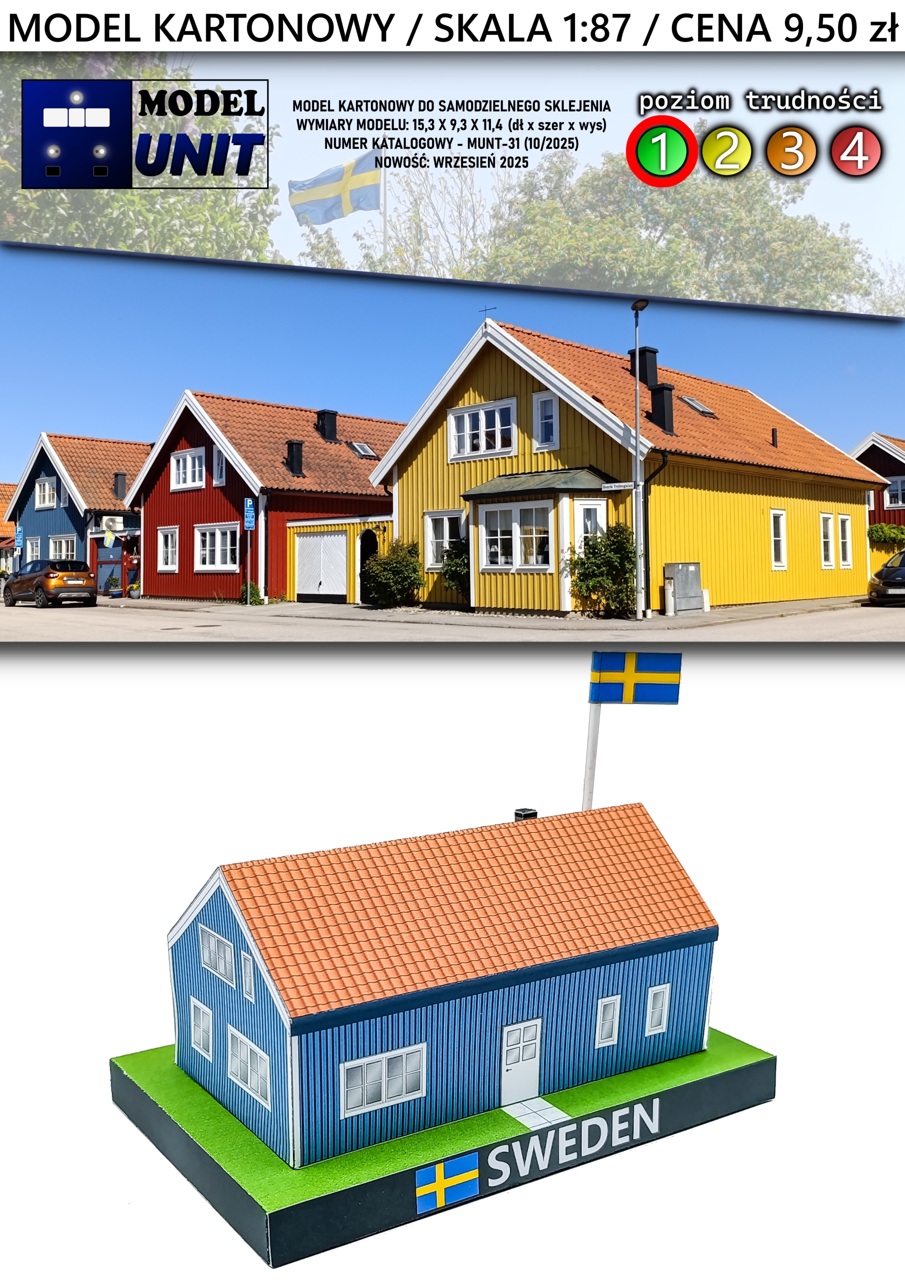 ШВЕДСКИЙ СКАНДИНАВСКИЙ ДОМ КАРТОННАЯ МОДЕЛЬ МАСШТАБ 1:87 Модель UNIT