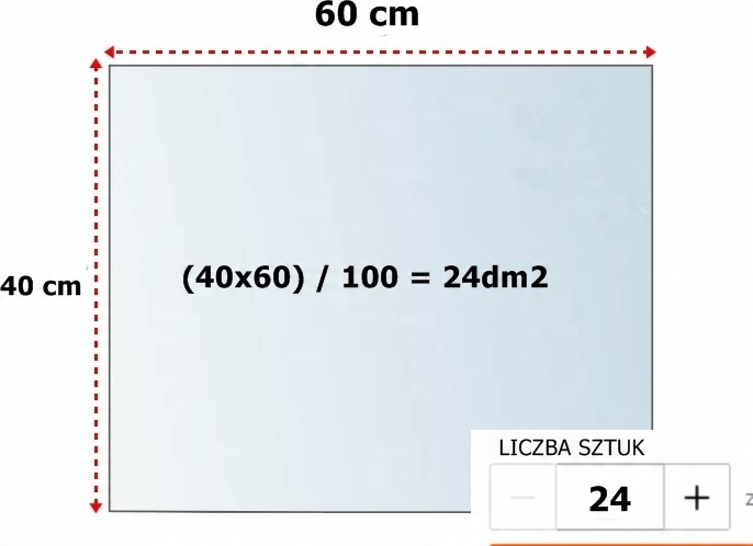 - 24 дм² x 16,99 злотых/дм² = 407,76 злотых брутто