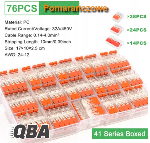 SZYBKOZŁĄCZA KABLOWE QBA+ Szybkozłączki typ Vago Organizer 76 szt Orange