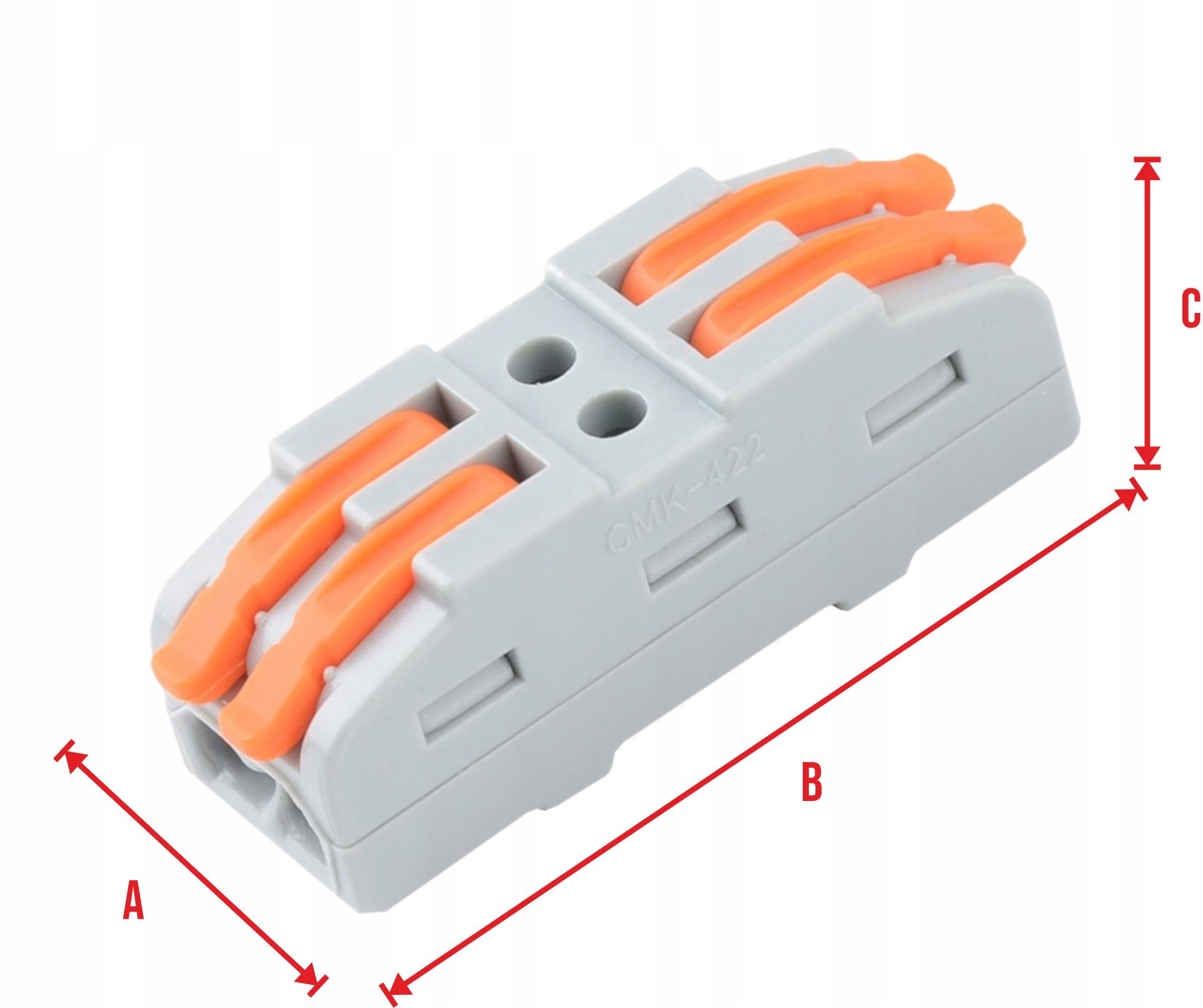 Установочный зажим - проходной быстродействующий соединитель, для кабеля и провода 2х0,08-4,0мм2.