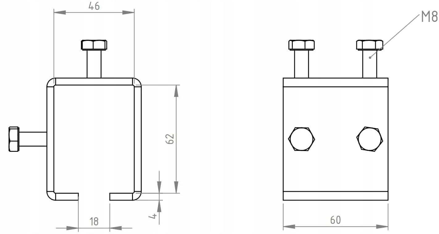 Гальванизированный подвал (железнодорожный) разъем с размерами 42x54 мм - используется в взвешенных воротах