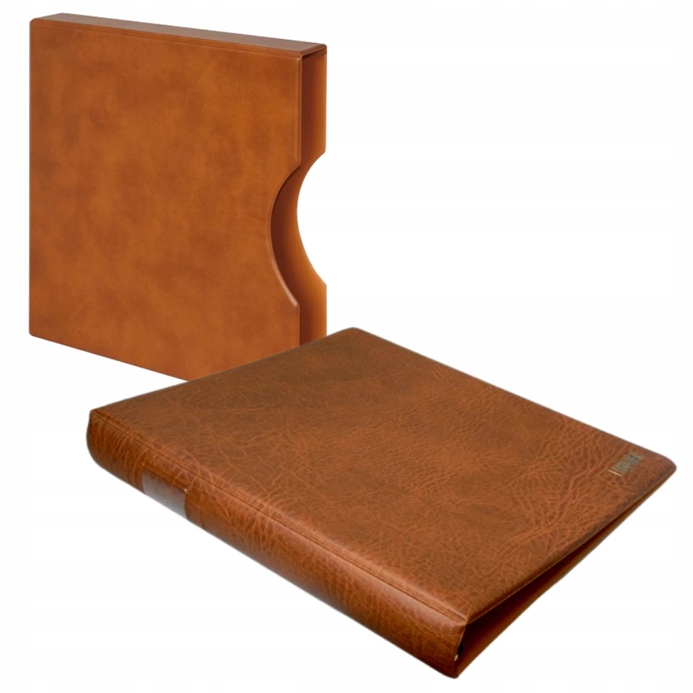 T- Альбом с Brown Case - Lindner - для карт для марок, банкноты, действие