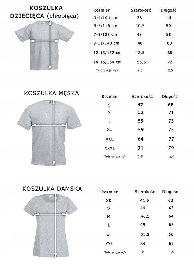 sprawdź dokładnie wymary koszulek - w tabeli rozmiarów!