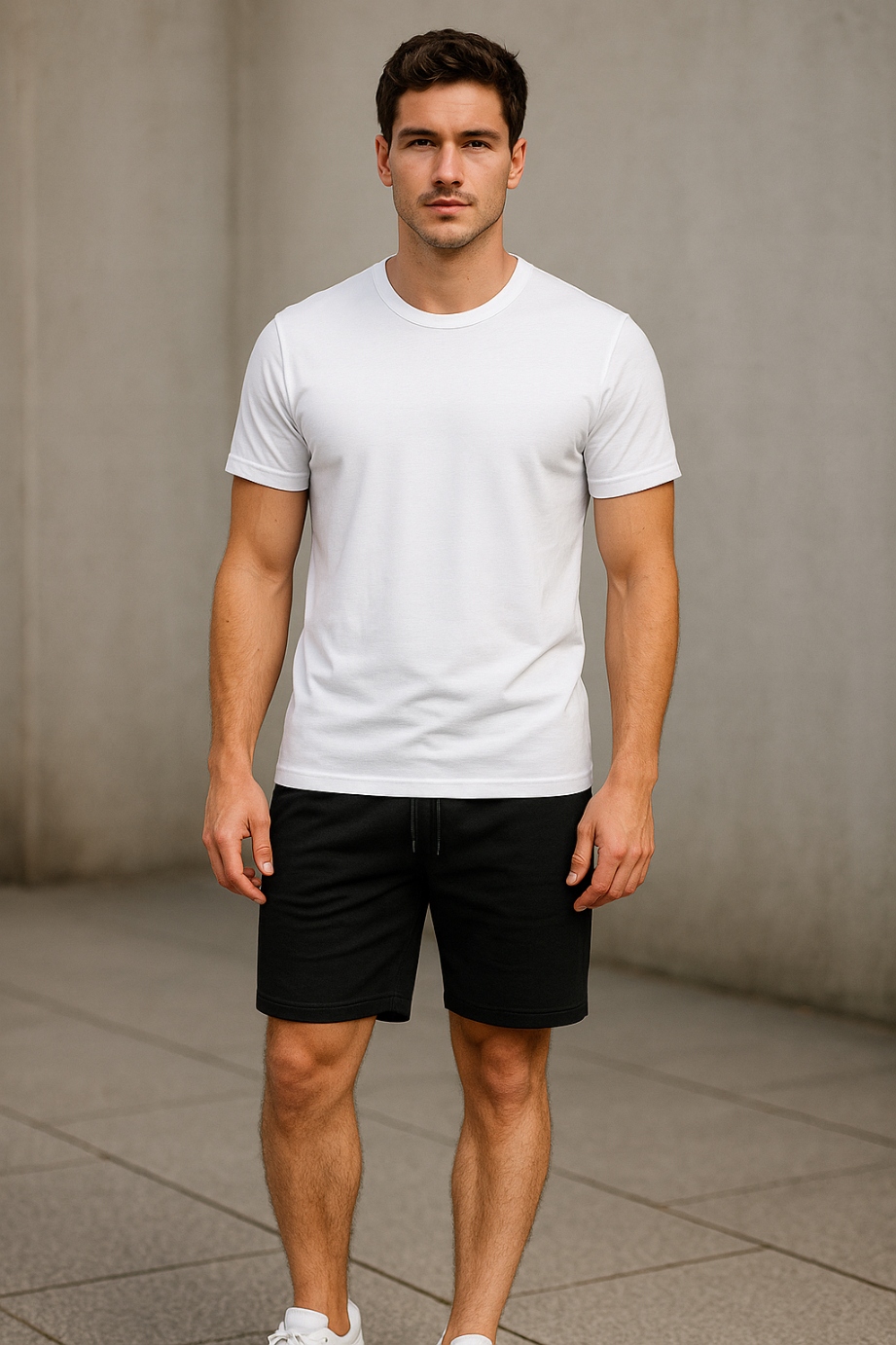 T -Fish Set с шортами, набор белой T -Fink и черные шорты XXL