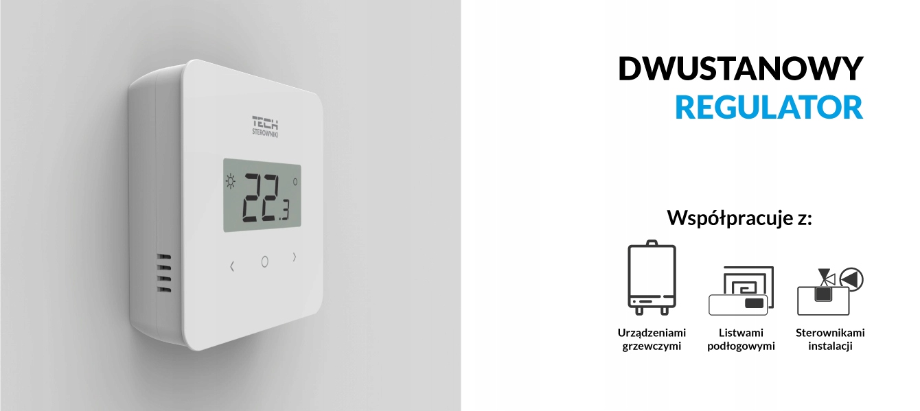 Проводной регулятор комнаты T-2.1 в белом предназначен для контроля температуры в комнате.