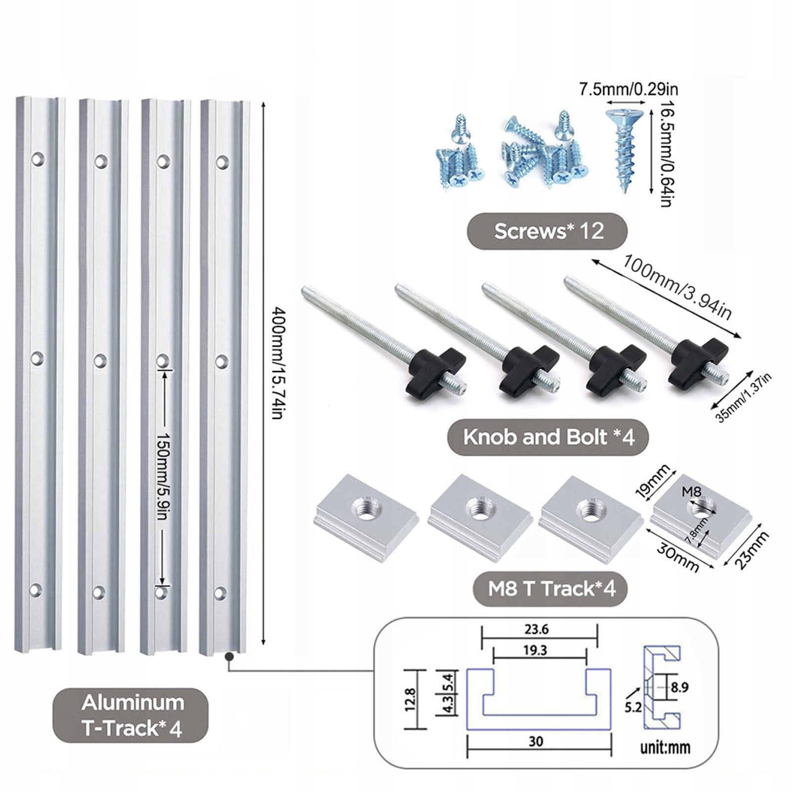 T -трек и слайдер алюминиевый алюминиевый набор K7 Woodwork