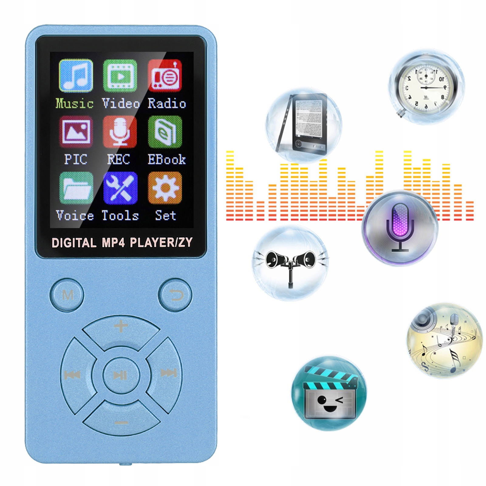 4. Поддерживает музыку, радио, запись, видео, электронную книгу, встроенную функцию секундомера.