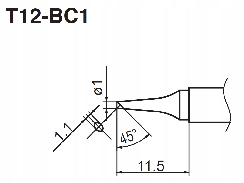 T12-BC1 диаметр наконечника 1 мм, скошенный под углом 45°.