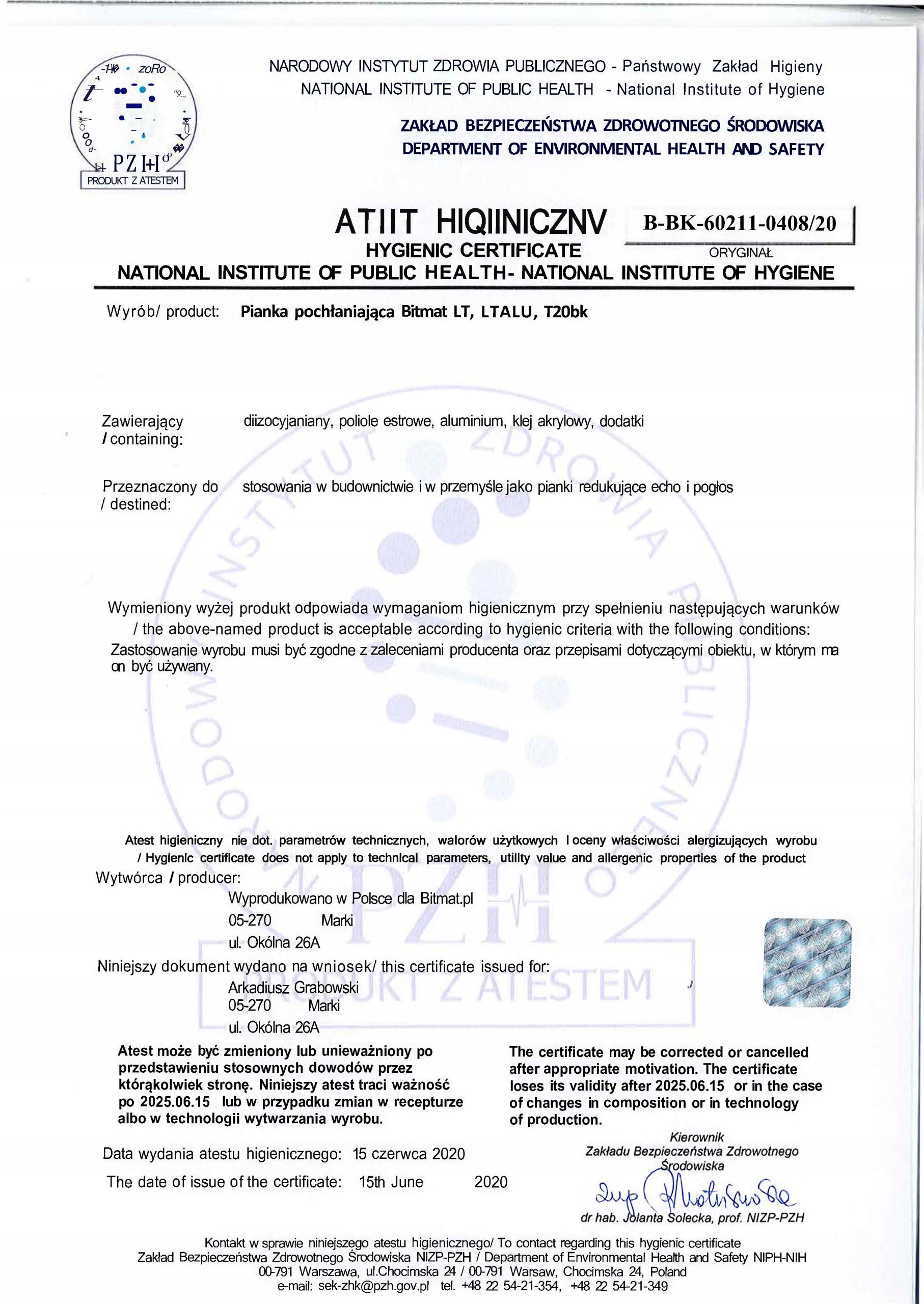 Изделие T20bk соответствует самым высоким гигиеническим стандартам Национального института гигиены