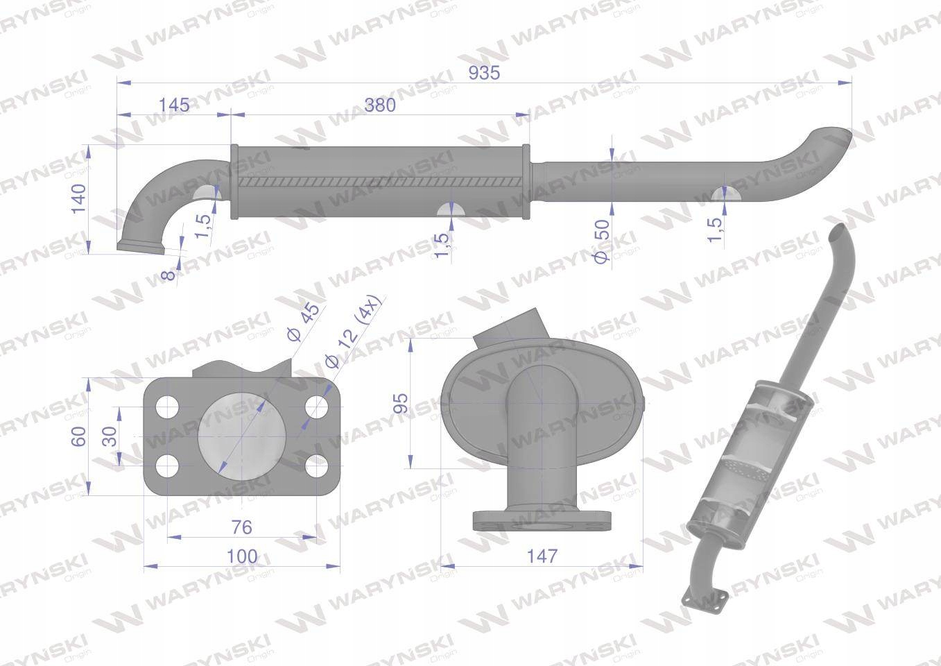 *Согнутый наконечник сливает выхлопные газы в сторону, таким образом устраняя выхлопные газы в кабину водителя,*алюминиевый лист DX53 + 120AS, устойчивый к коррозии,*краска на основе смолы, модифицированная силиконовым, устойчивым к температуре до 900,*постоянная видимая маркировка, внимание! Краска, используемая на глушителях, нуждается в нагревании, чтобы стать равномерным. После нанесения трактора и согревания глушителя, маленькие царапины и ссадины исчезнут,