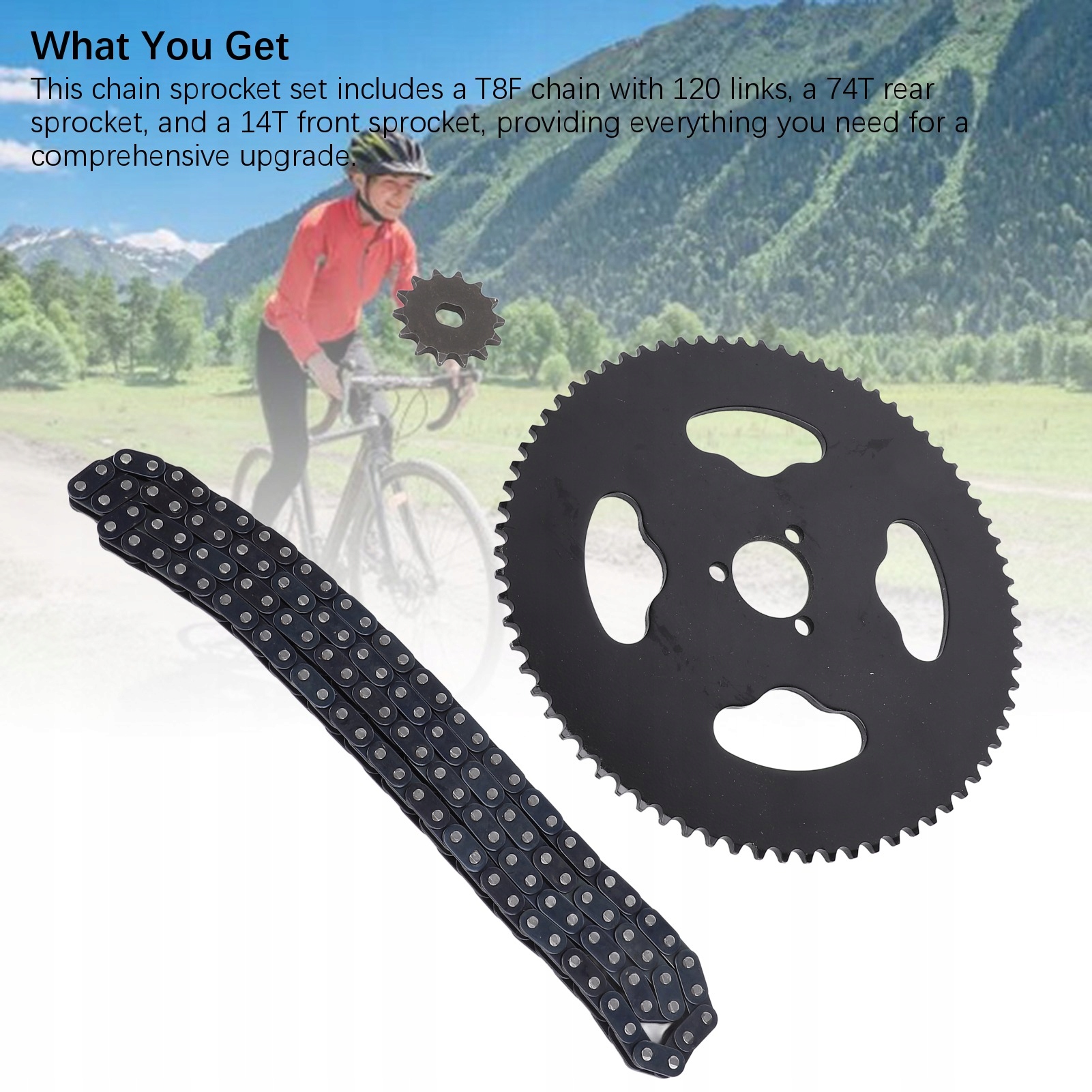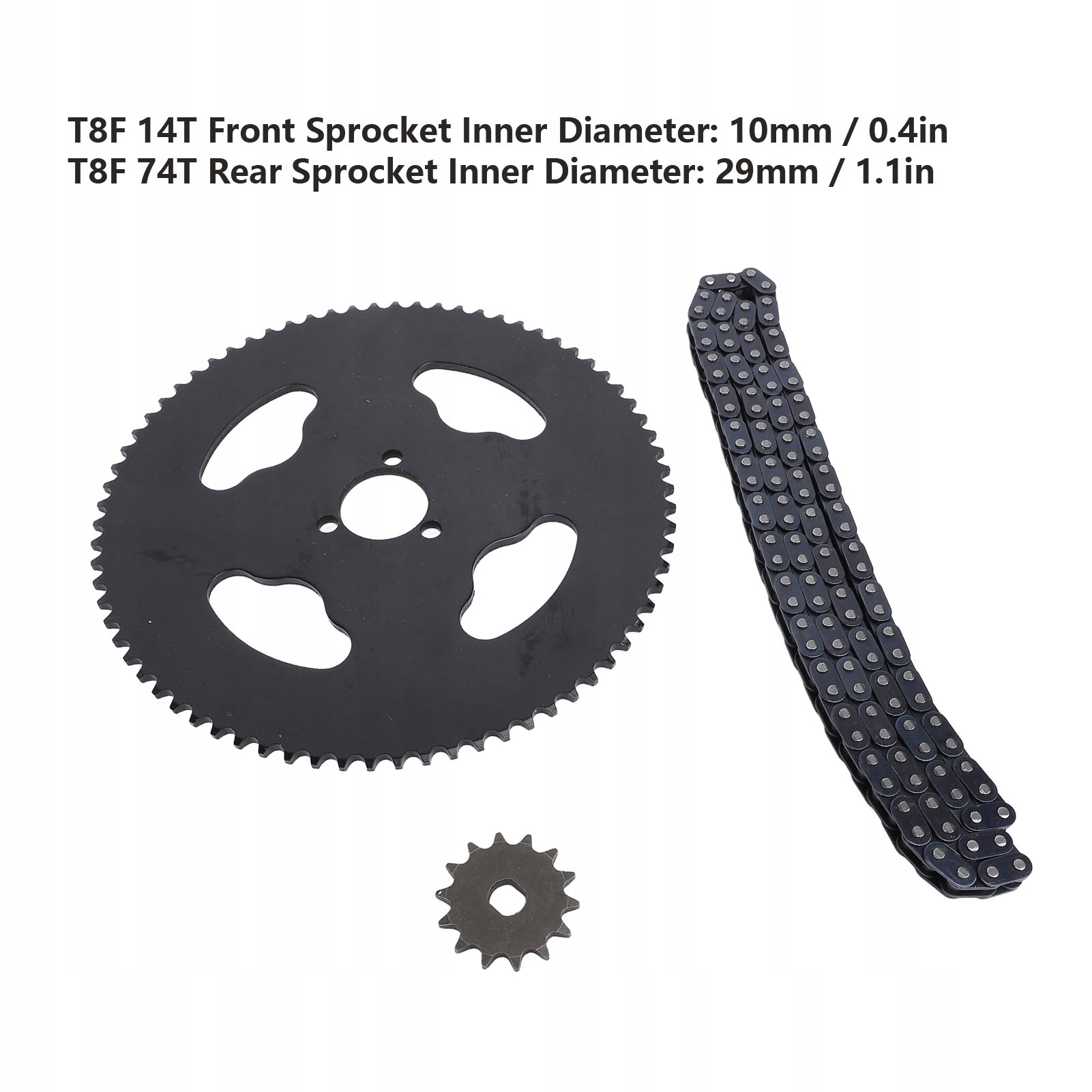 5. Что вы получаете: этот набор уплотнений передачи содержит цепь T8F с 120 соединениями, 74T задней цепной цепной и передней передней частью зубного моря, обеспечивая все необходимое для полного обновления.